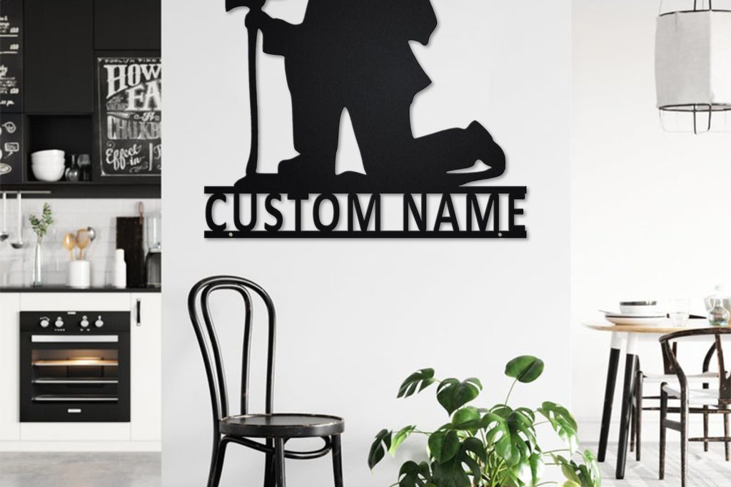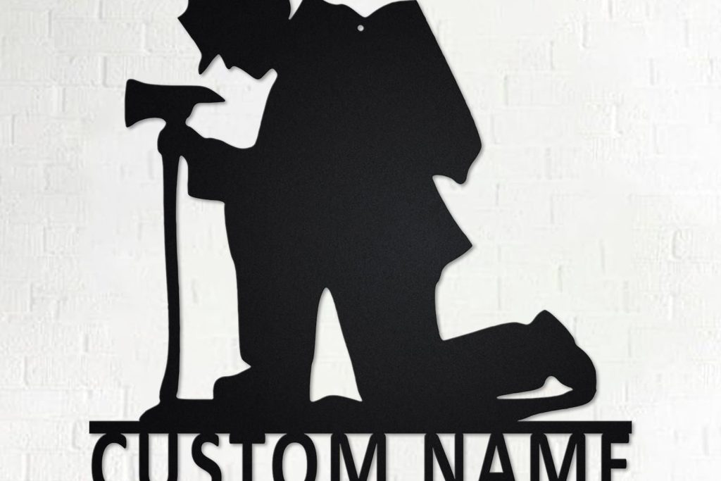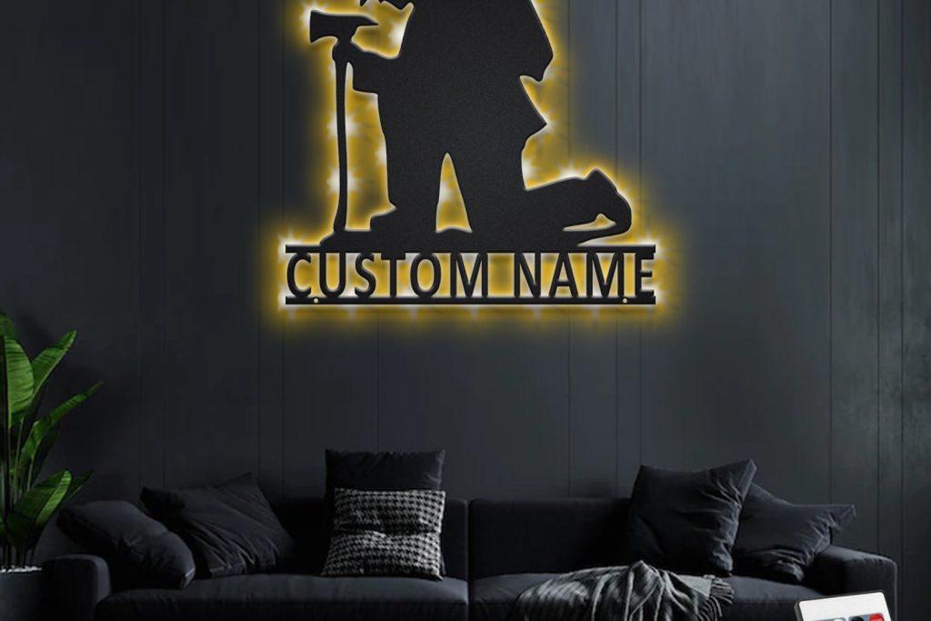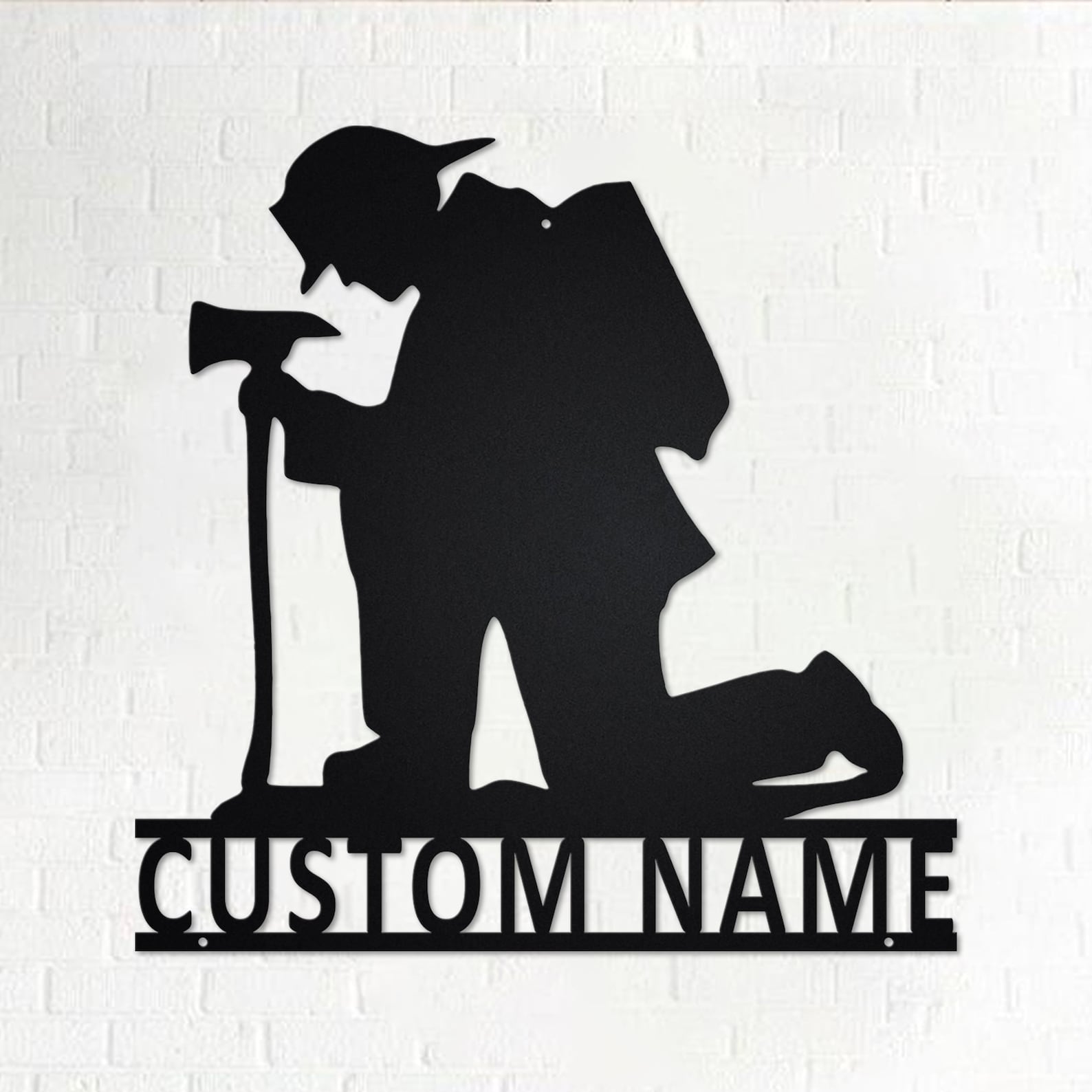 Custom Fireman Kneeling Metal Sign with LED – Room Decoration