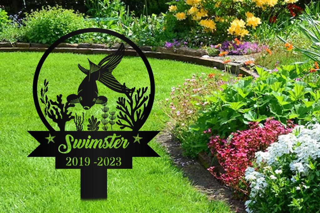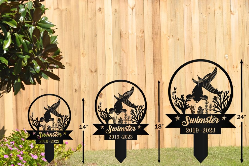 Custom Fish Pet Memorial Garden Stake,Personalized Grave Marker Stake,Fish Memorial Metal Sign,Yard Stake,Outdoor Fish Garden Decor
