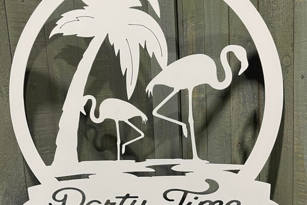 This tropical flamingo and palm tree sign can be customized for etly your space and design needs. Choose your custom size, color and wording for the perfect fit.