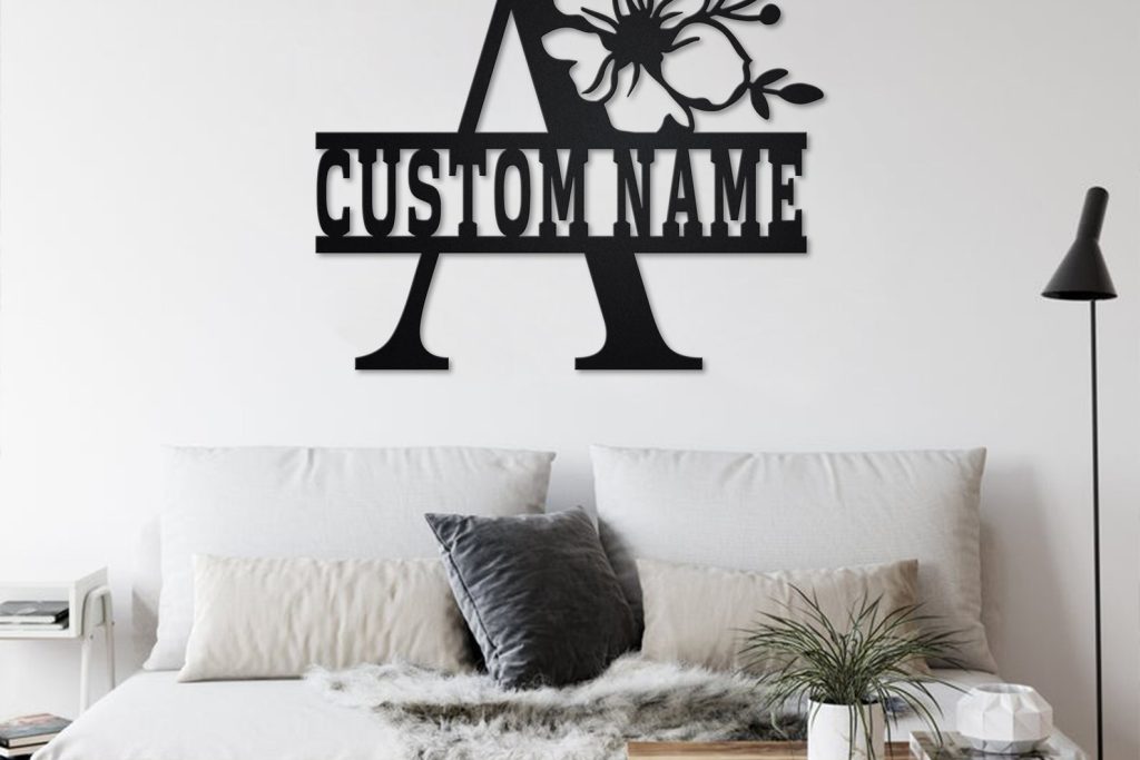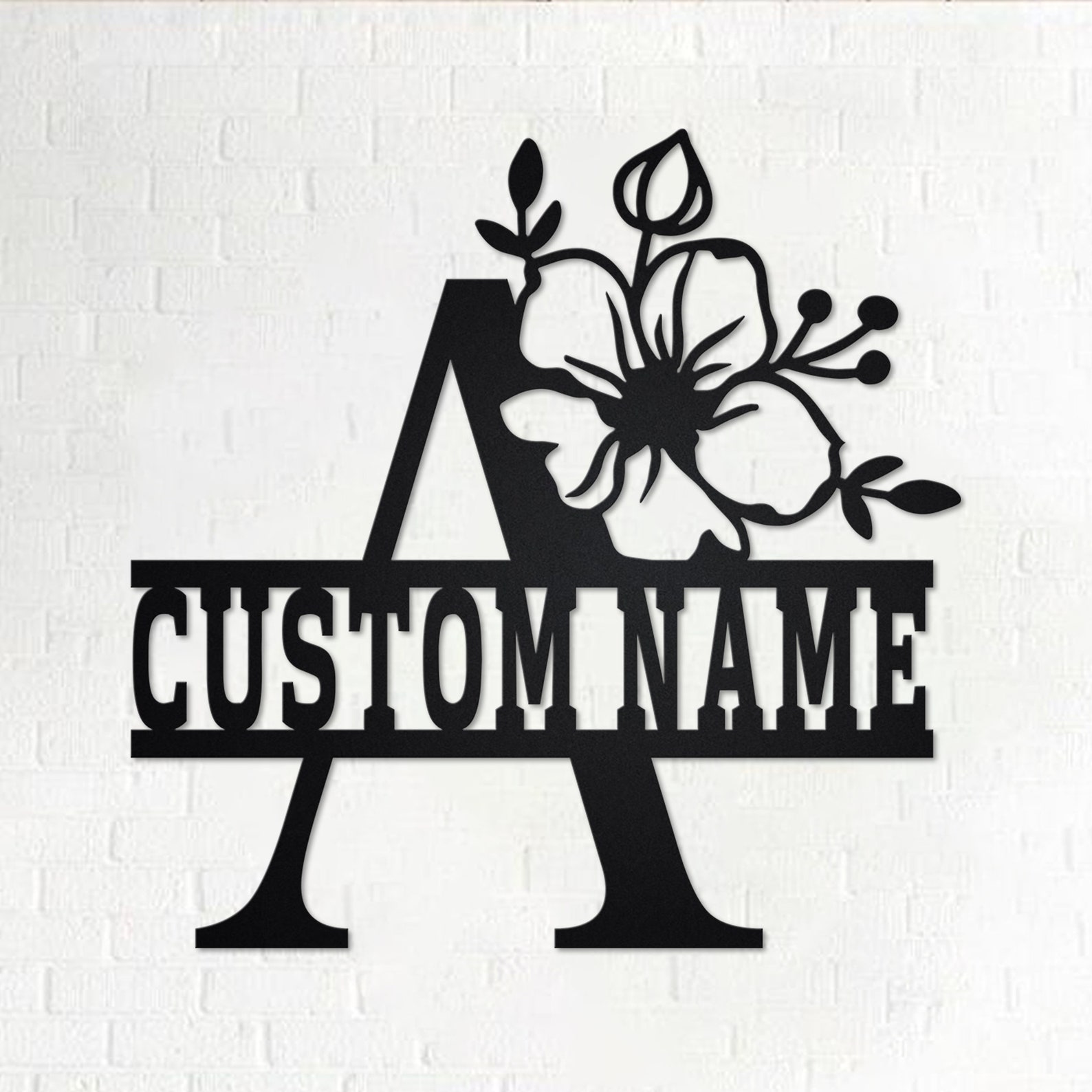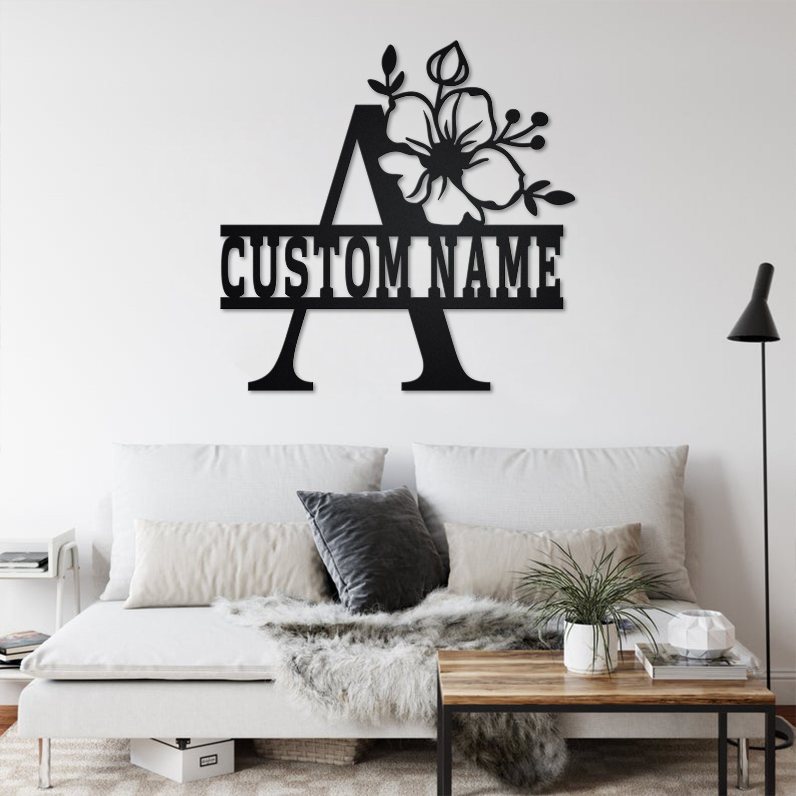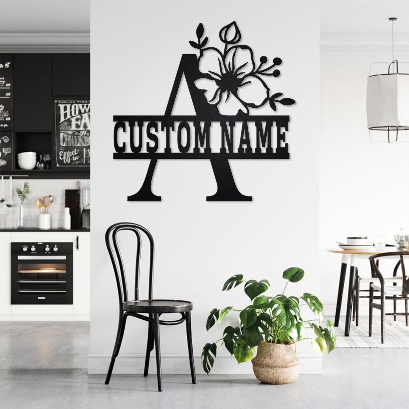 Custom Floral Alphabet A Metal Sign with LED – Family Name Decor