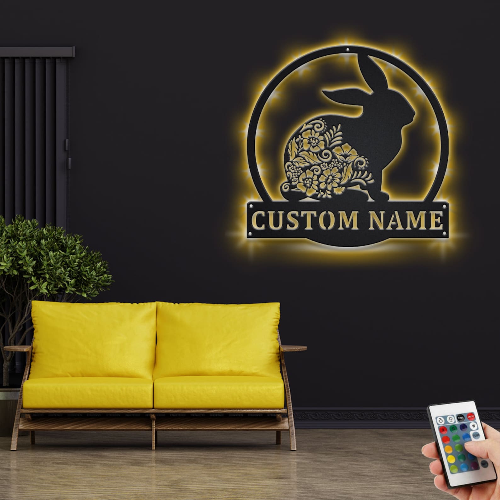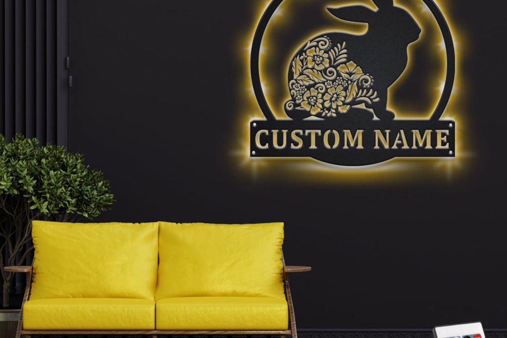 Be the first to review “Custom Floral Bunny Metal Wall Art with LED Light”