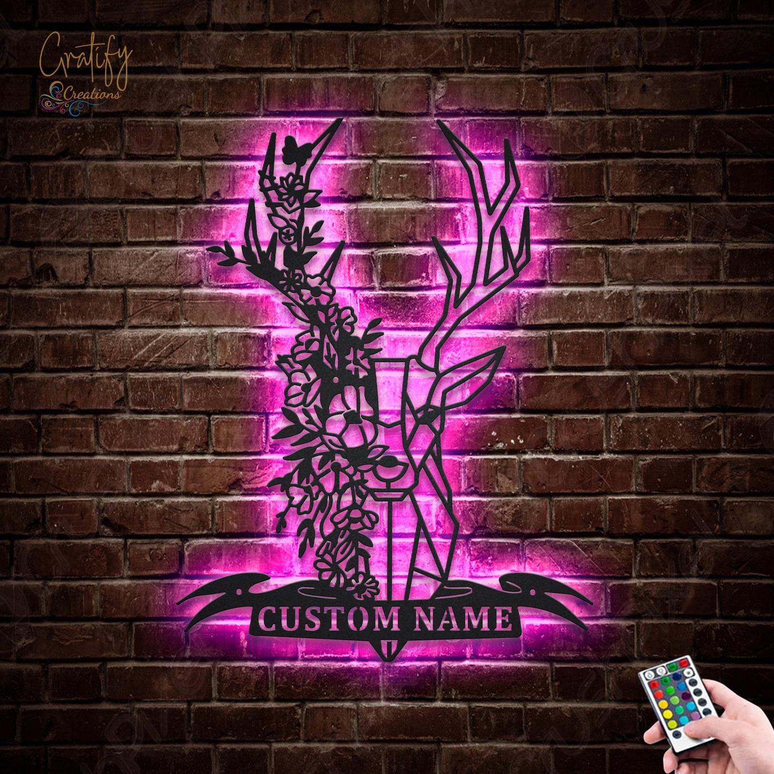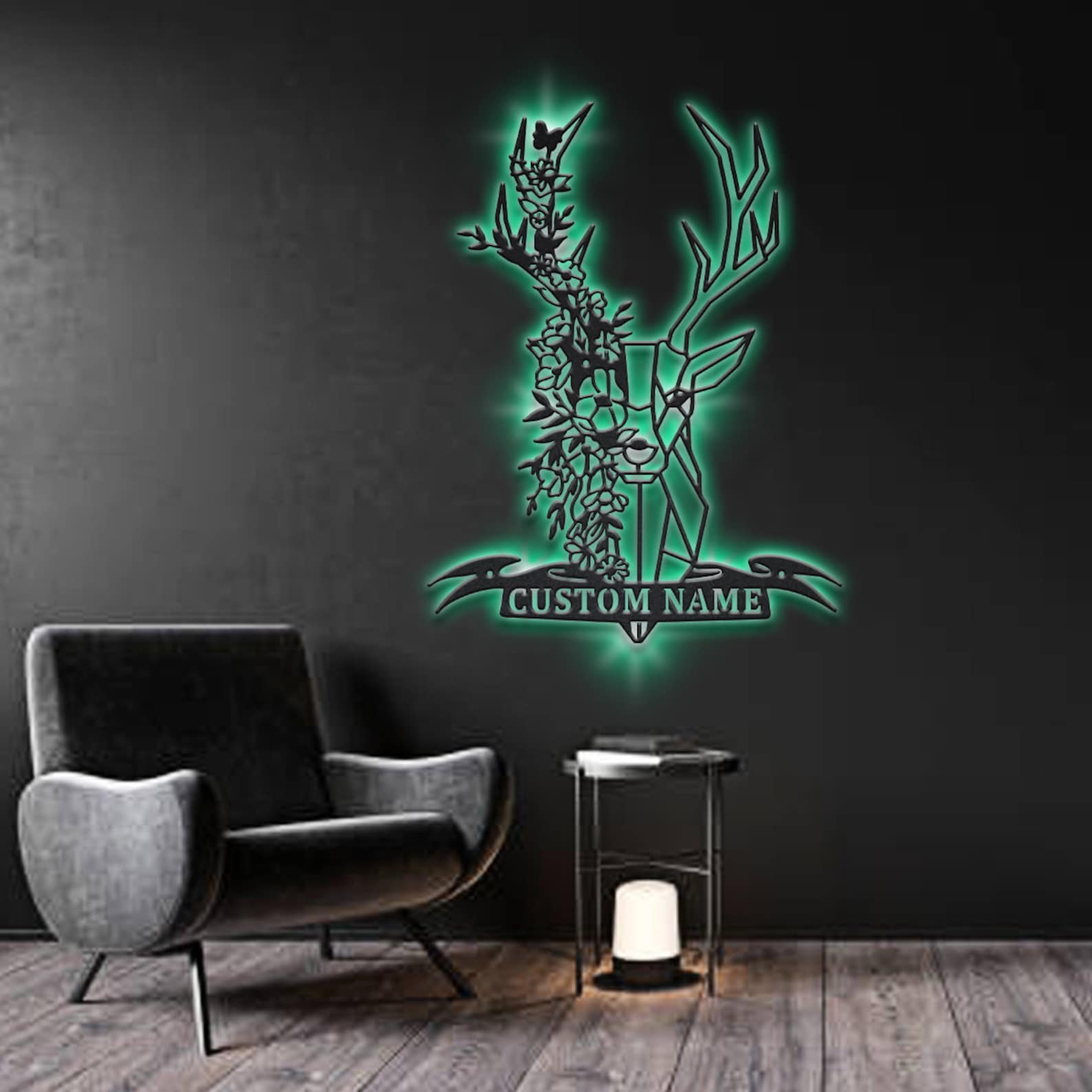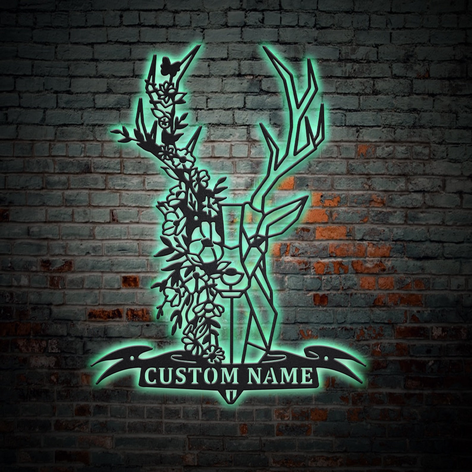 Be the first to review “Custom Flower Deer Monogram Sign – LED Lights, Hunting Decor”