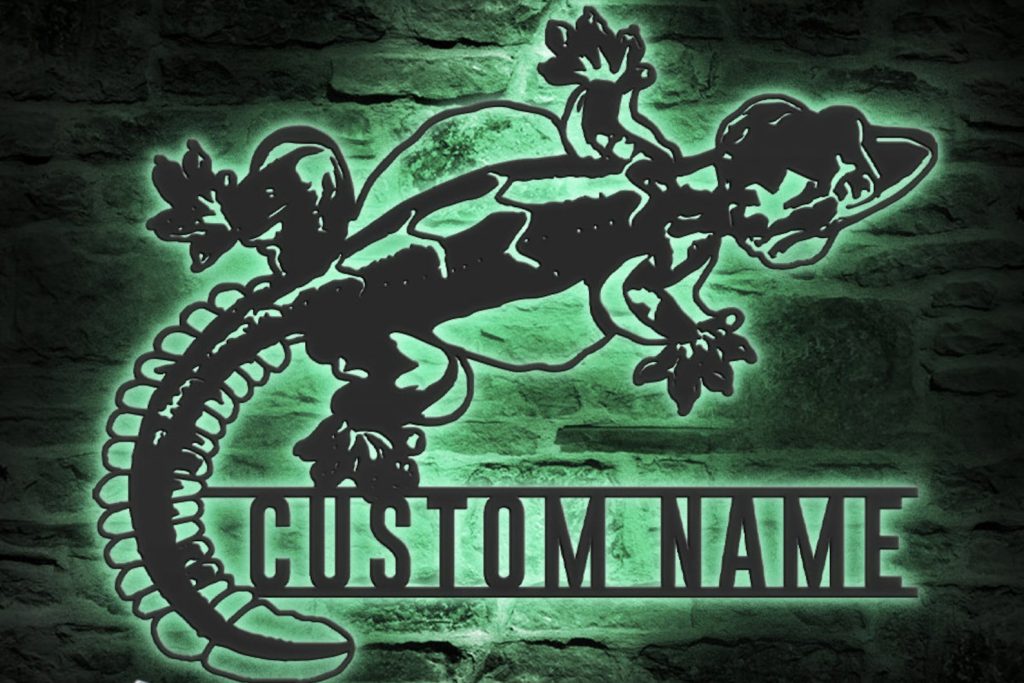 Be the first to review “Custom Flying Gecko Metal Wall Art – LED Light, Personalized Lizard Lover Sign”