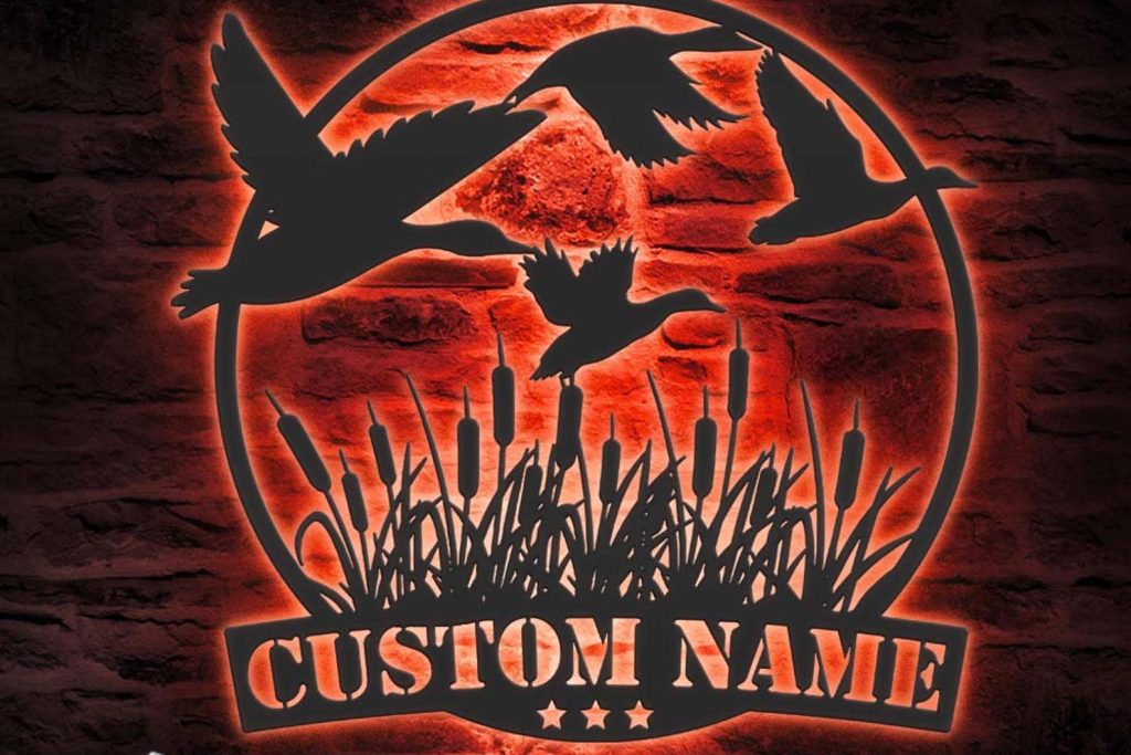 Be the first to review “Custom Flying Mallard Duck Metal Art with LED & Name”