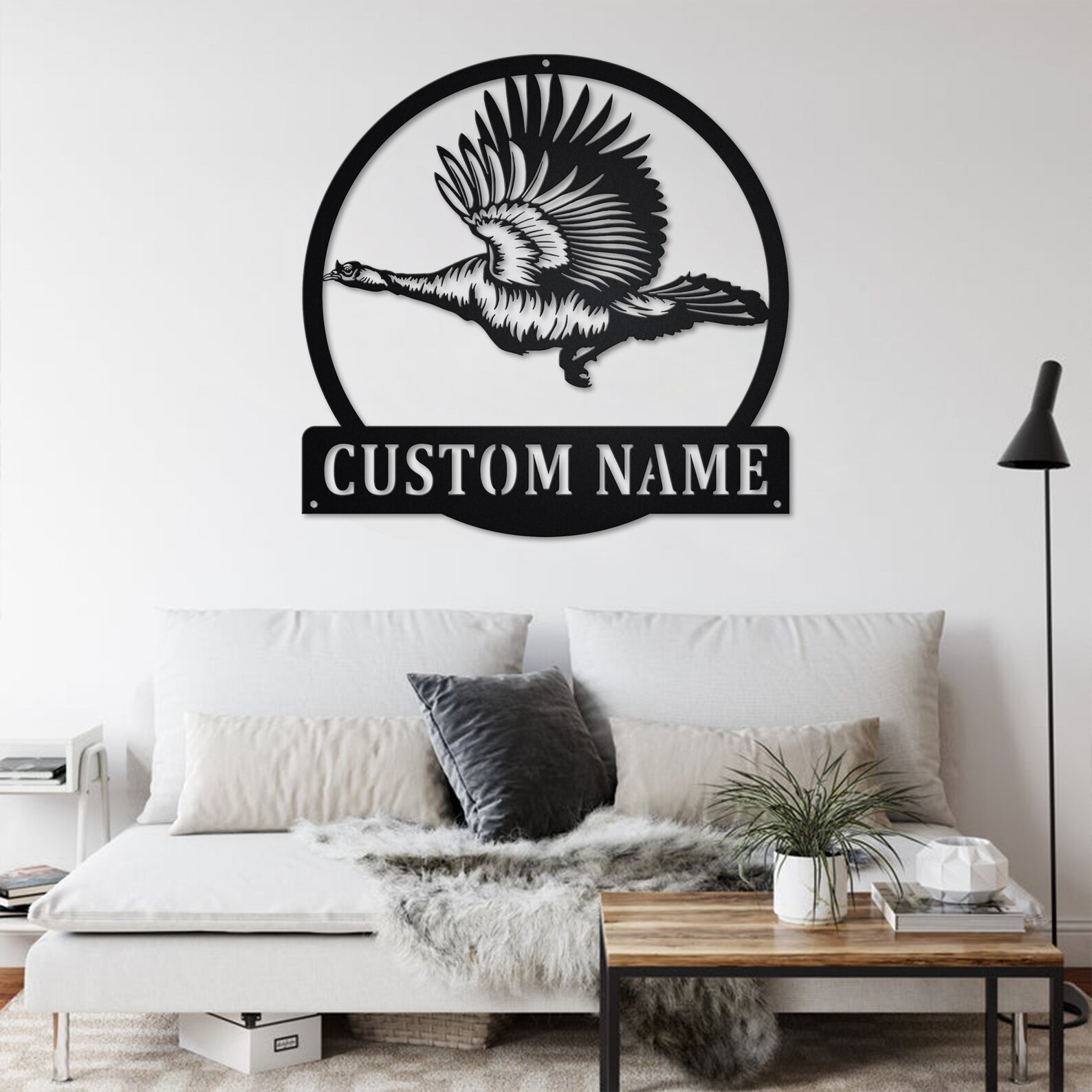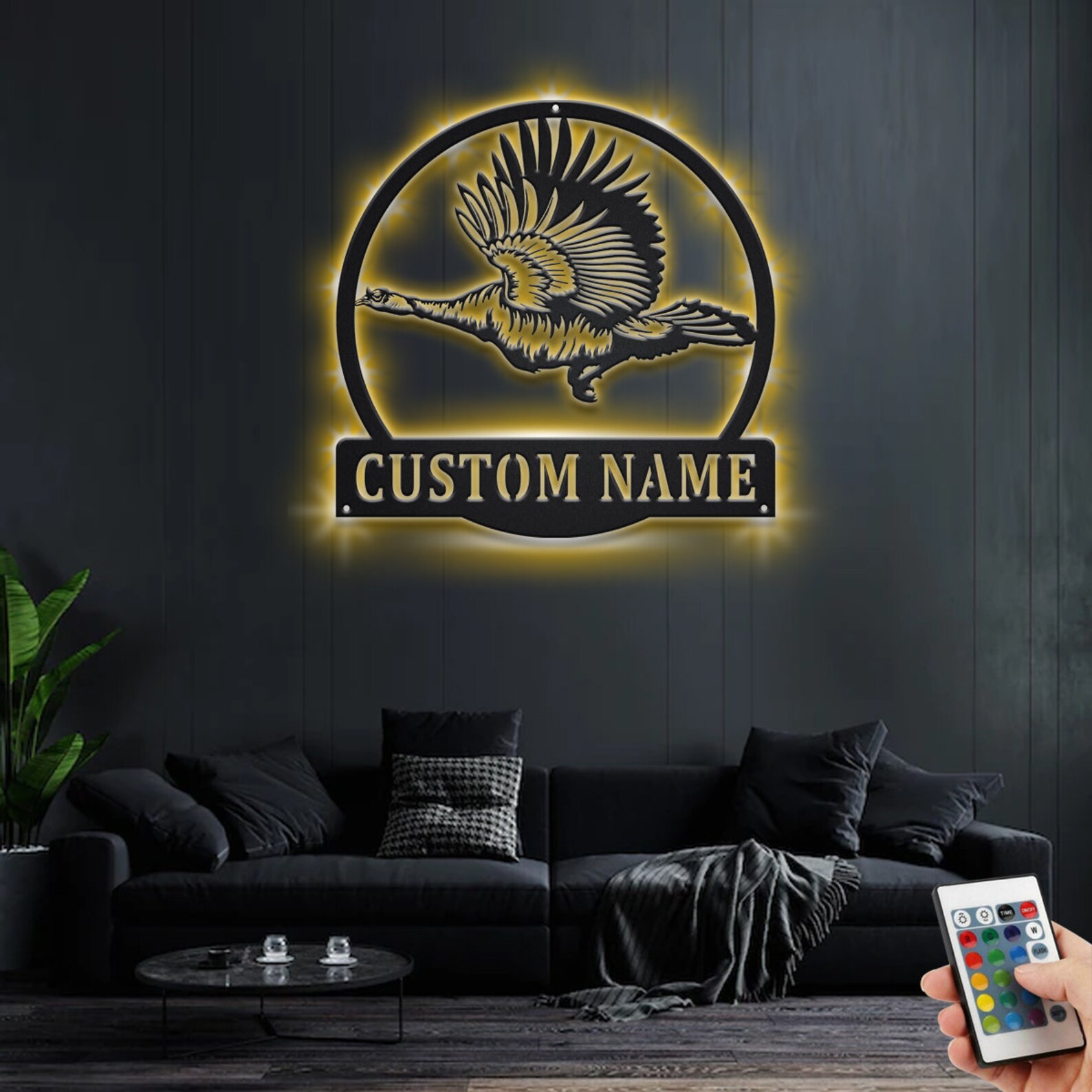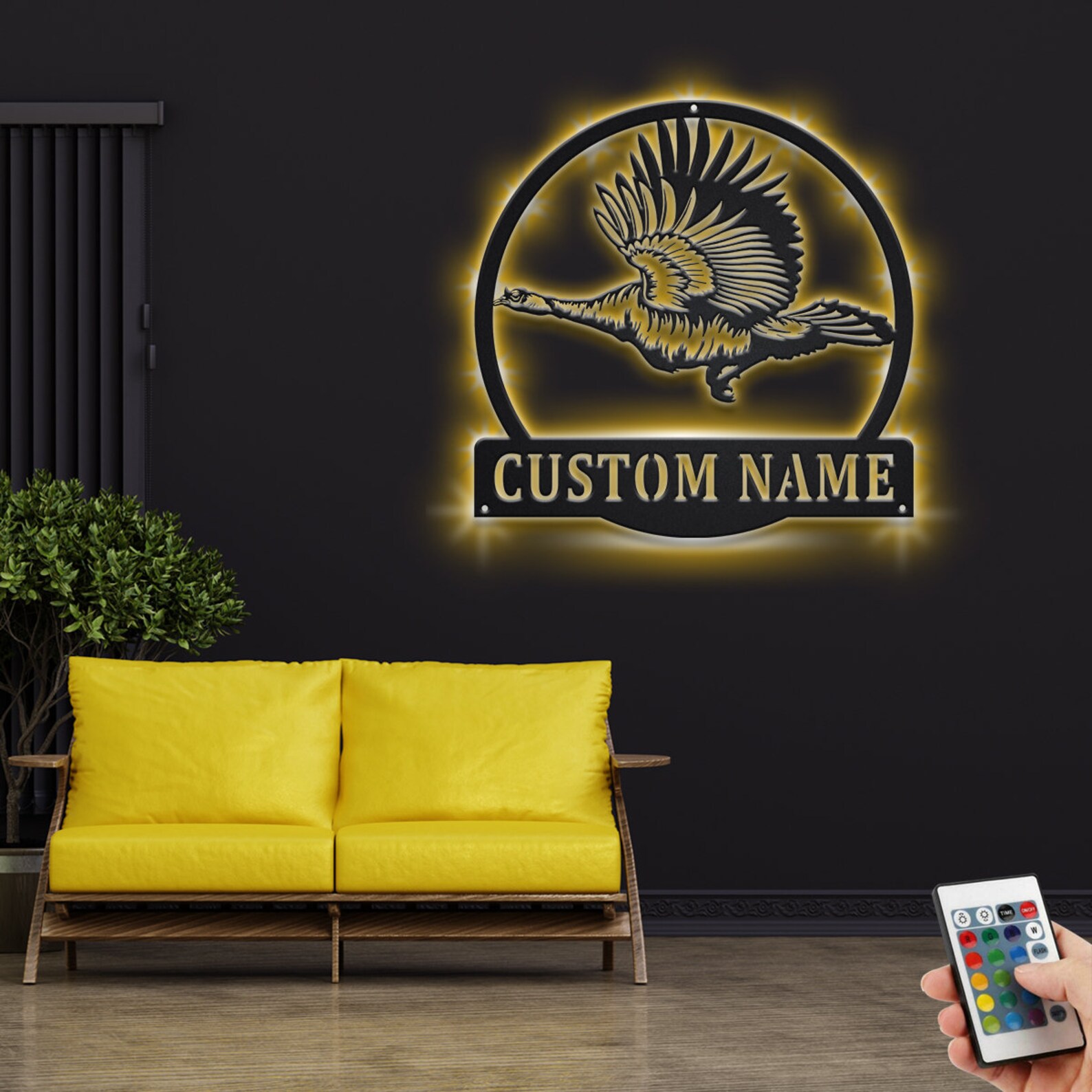 Custom Flying Turkey Metal Sign, LED Light, Turkey Decor