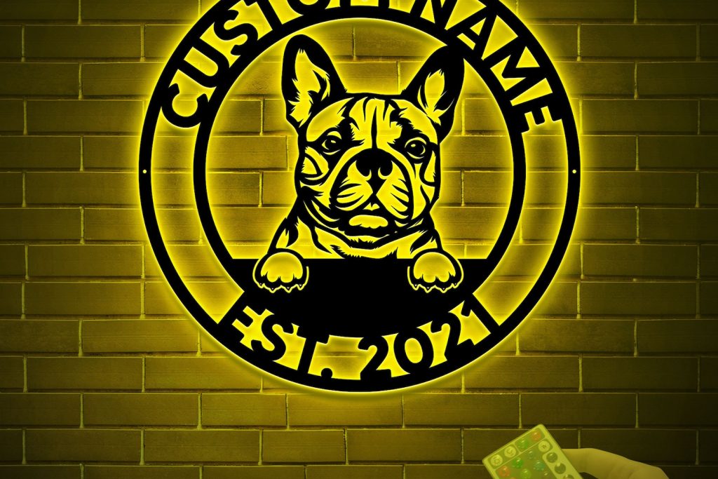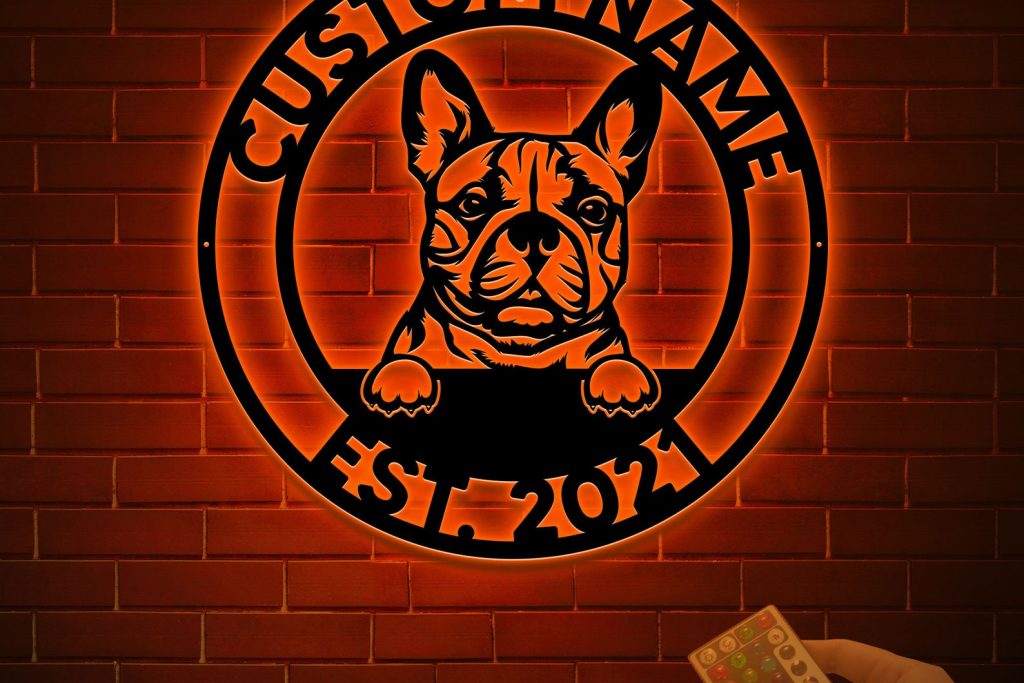 Custom French Bulldog Metal Sign with LED – Personalized Name