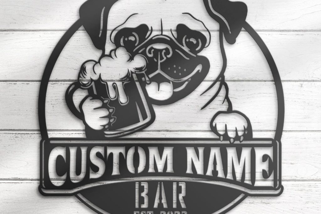 Be the first to review “Custom Funny Pug Beer Pub Metal Wall Art – LED Light, Personalized Sign”
