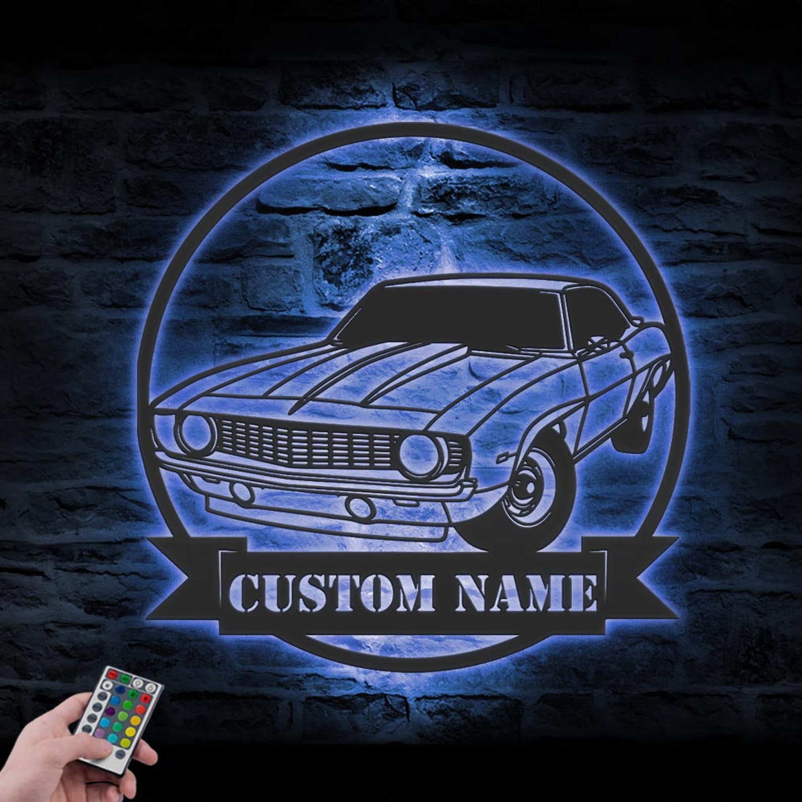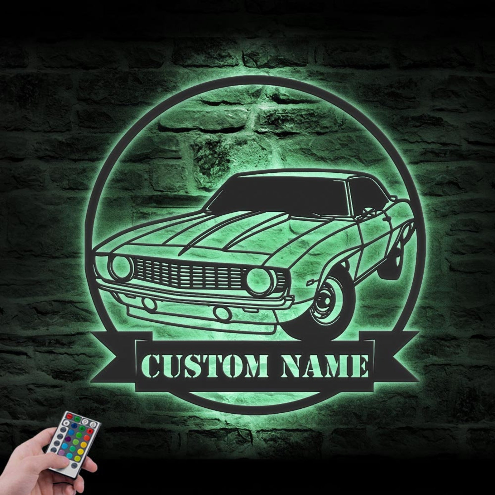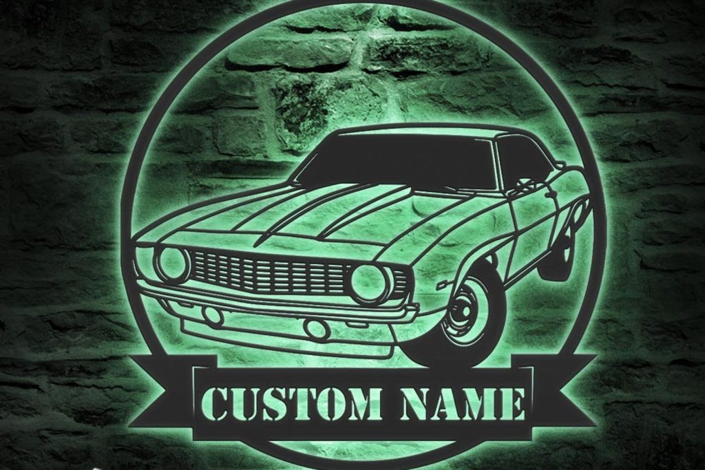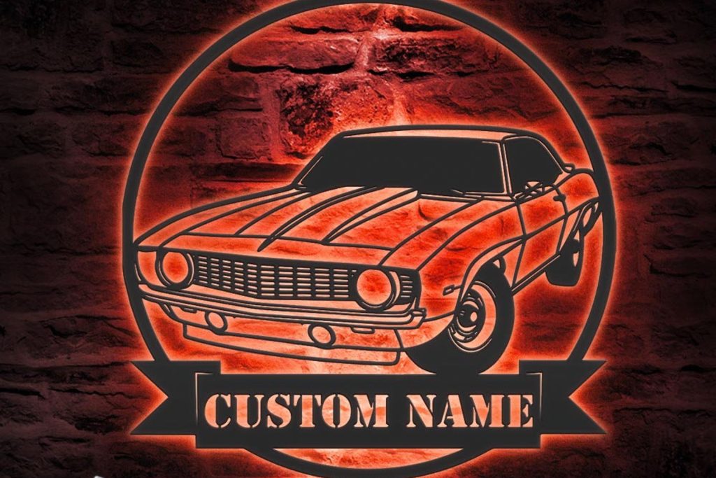 Custom Garage Metal Wall Art – LED Light, Personalized