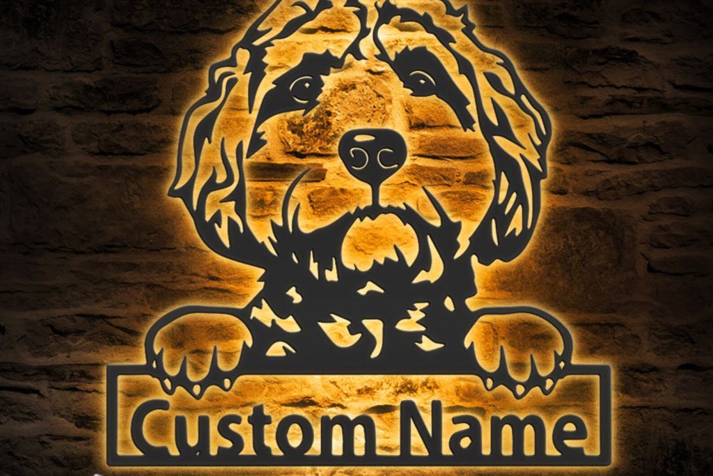 Be the first to review “Custom Golden Doodle Metal Sign with LED – Labradoodle Decor”