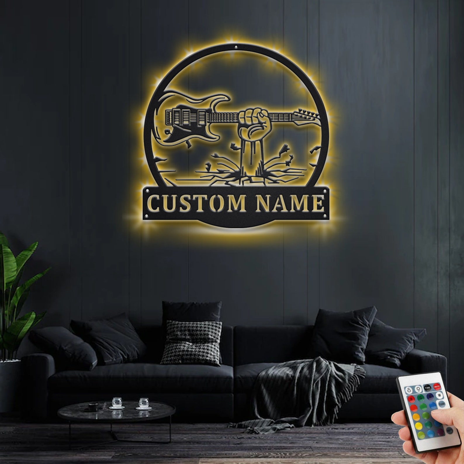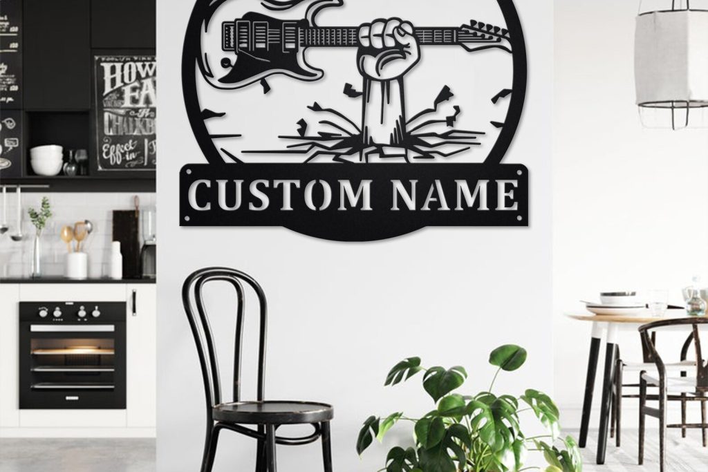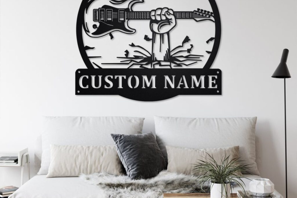 Custom Guitar Hand Metal Sign with LED – Room Decoration