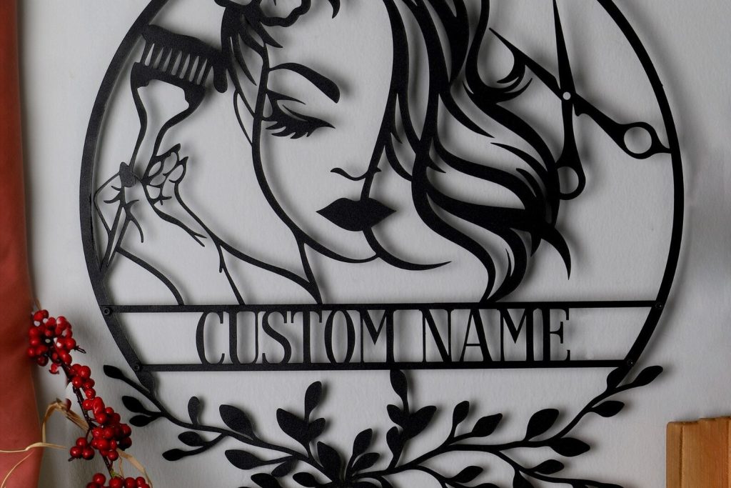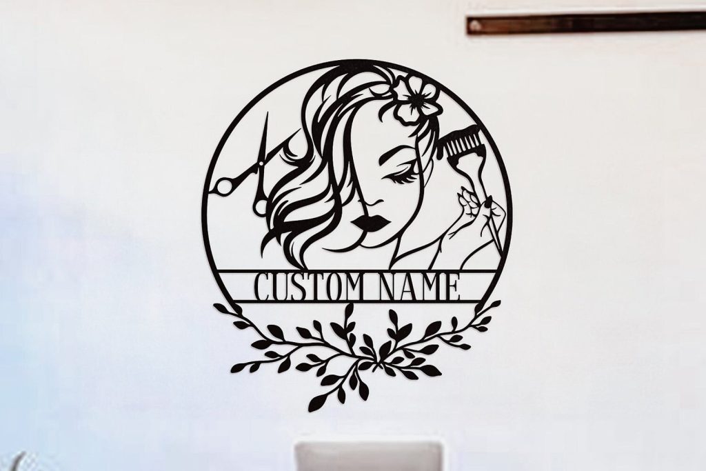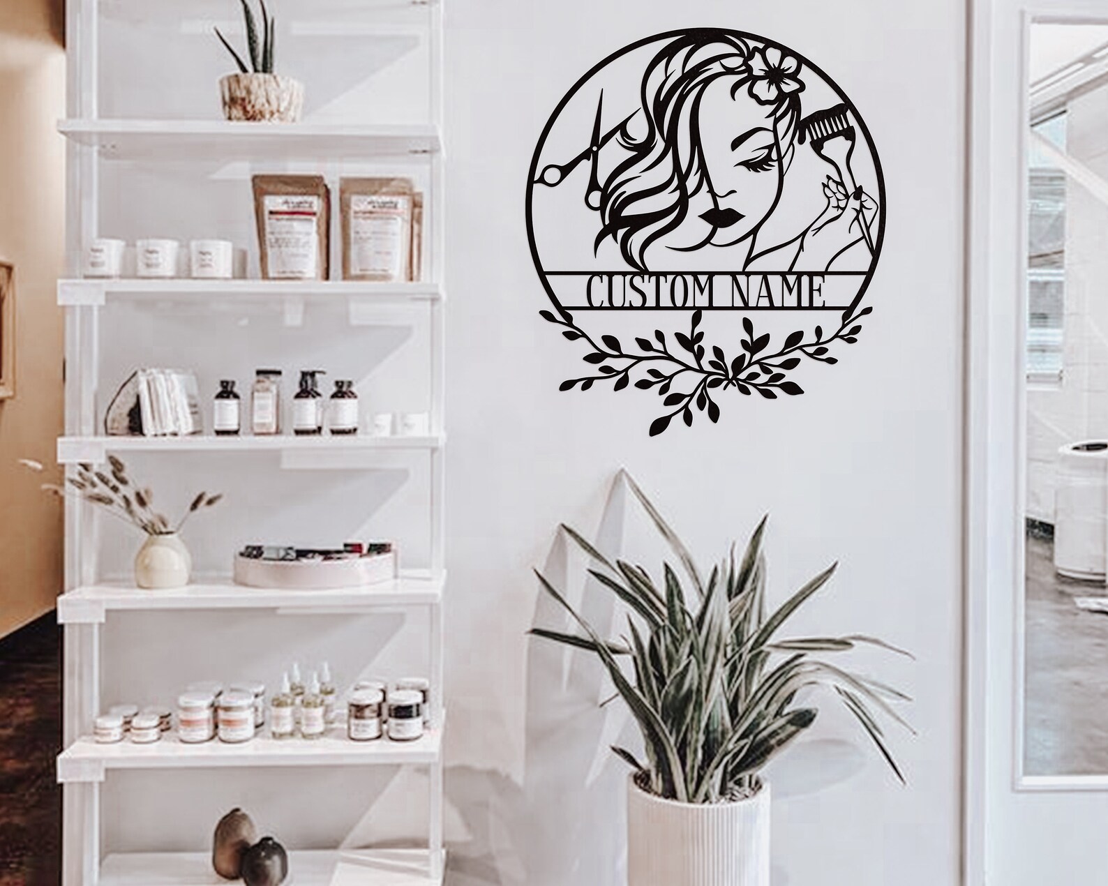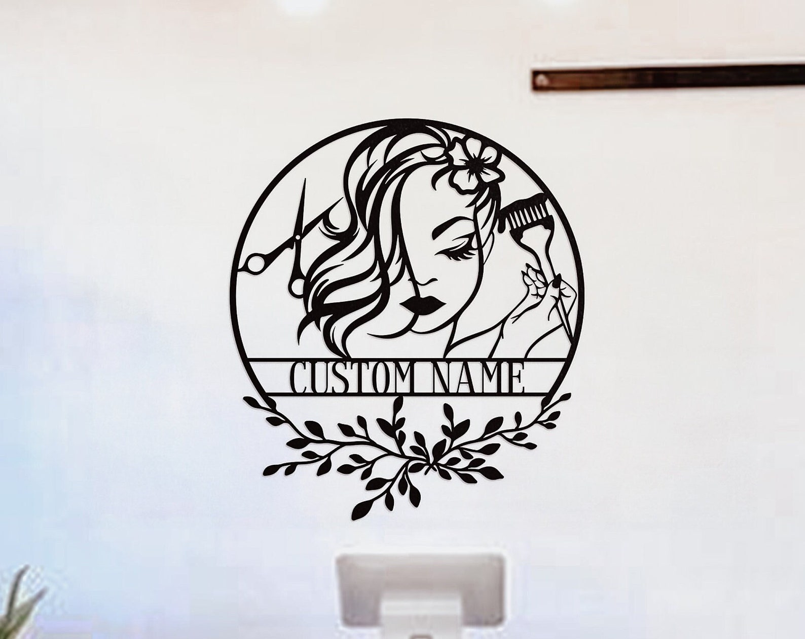 Custom Hair Dresser Metal Sign, Floral Hair Salon Wall Art, Personalized Hair Stylist Name Sign, Gift For Shop, Business Logo, Shop Decor, Name Plaque, Iron Gift for Woman, Wall Decor For Her, Birtday Gift, Minimalist Wall Decor, Gift for Her