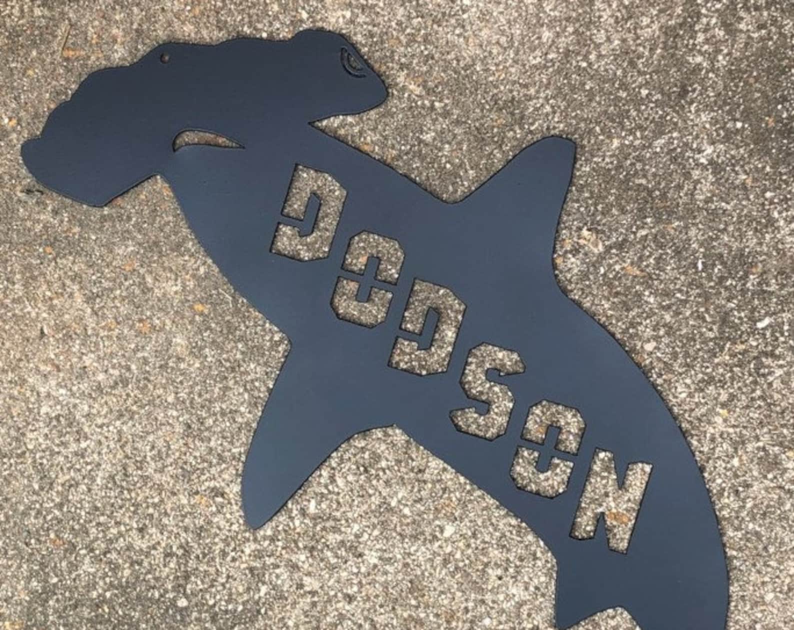 This listing is for a metal Hammerhead Shark with your name incl. Painted custom! Take a look at the drop-down menus for sizes and color options.