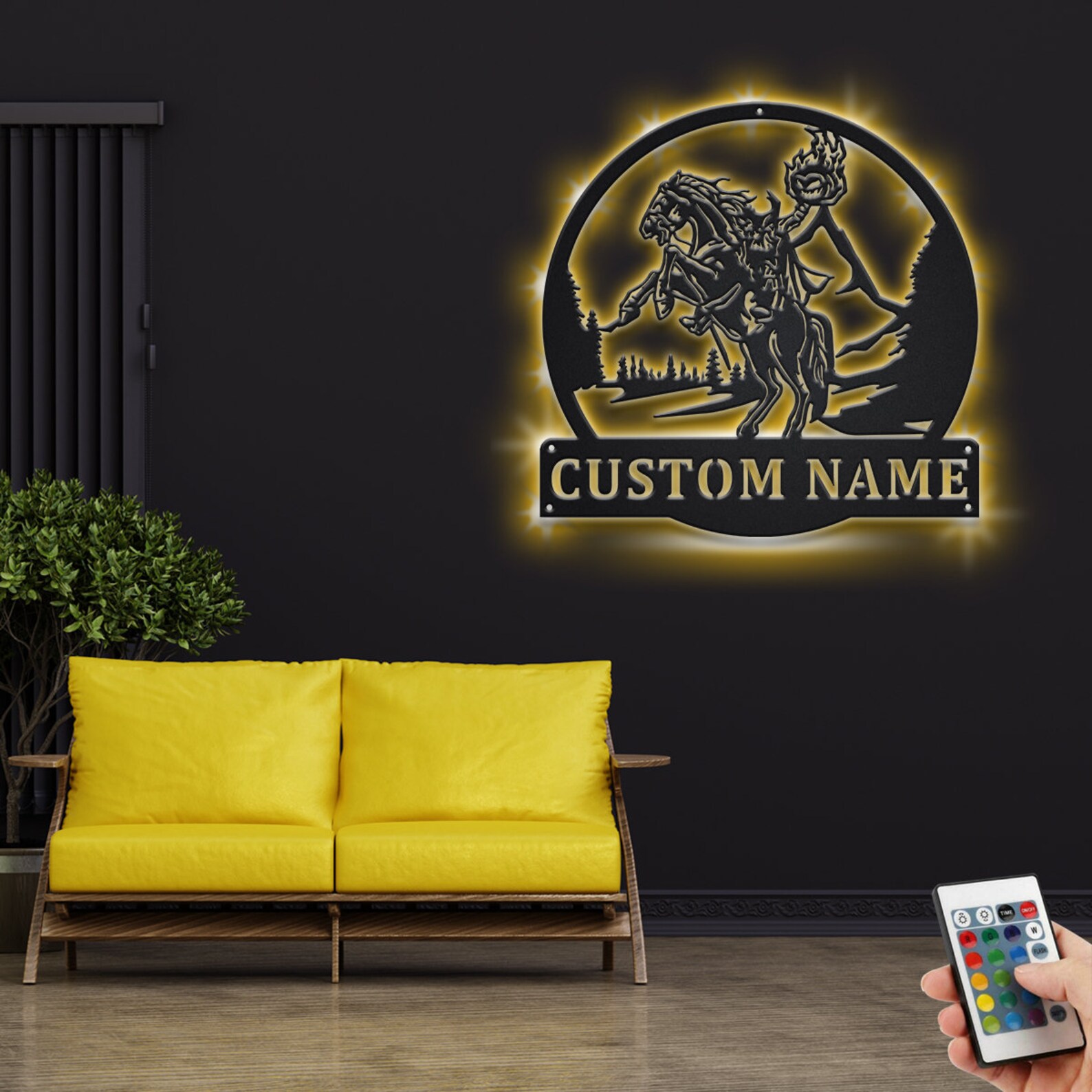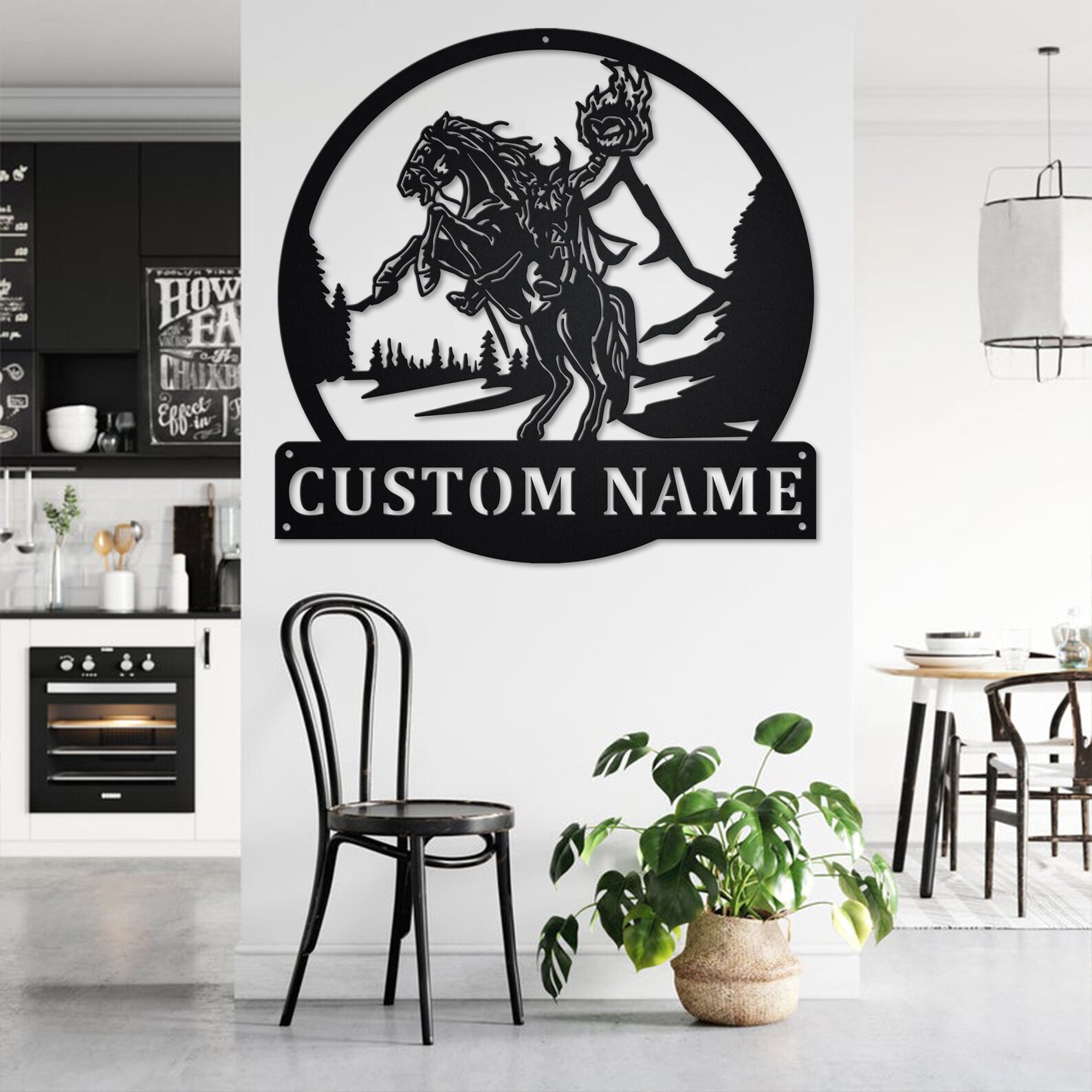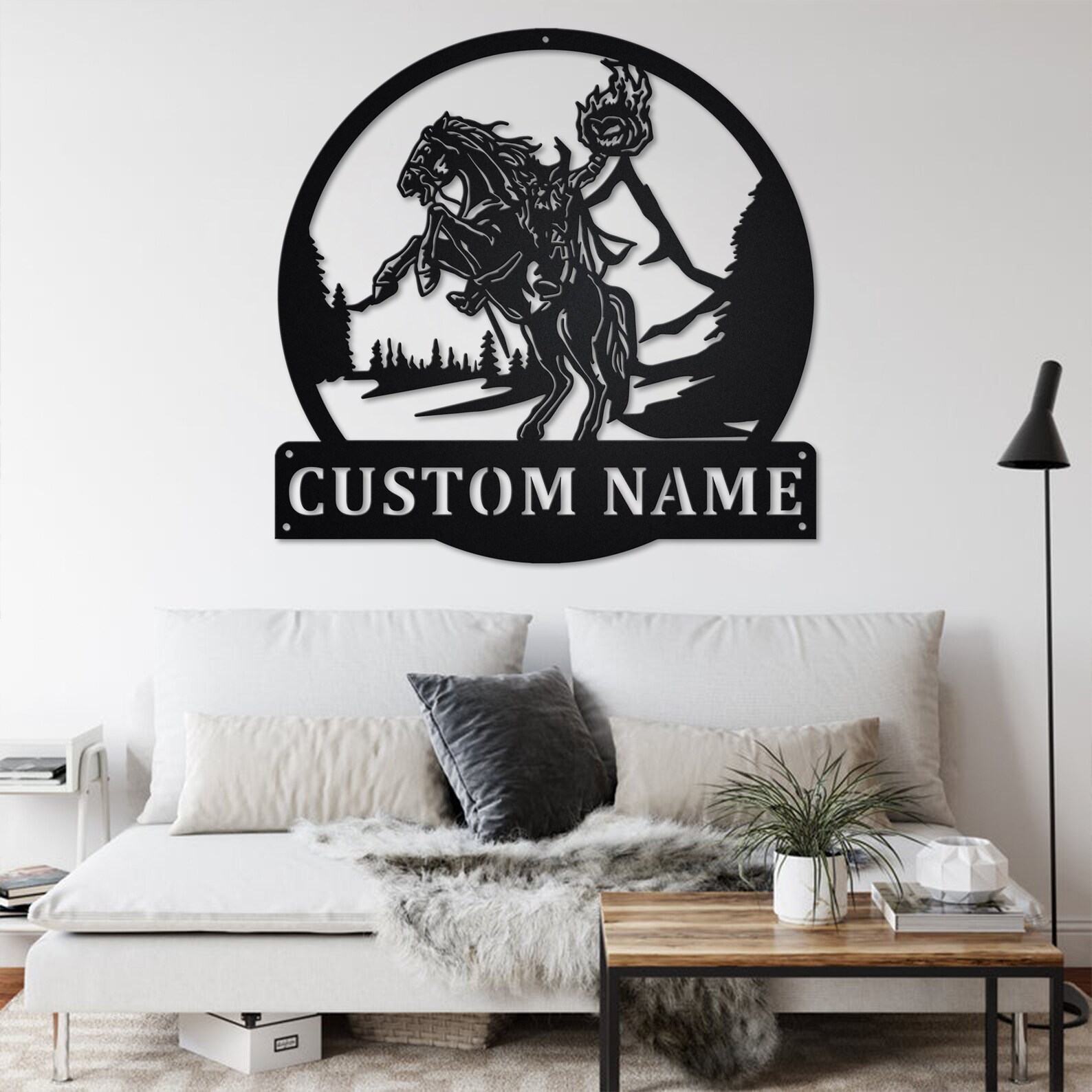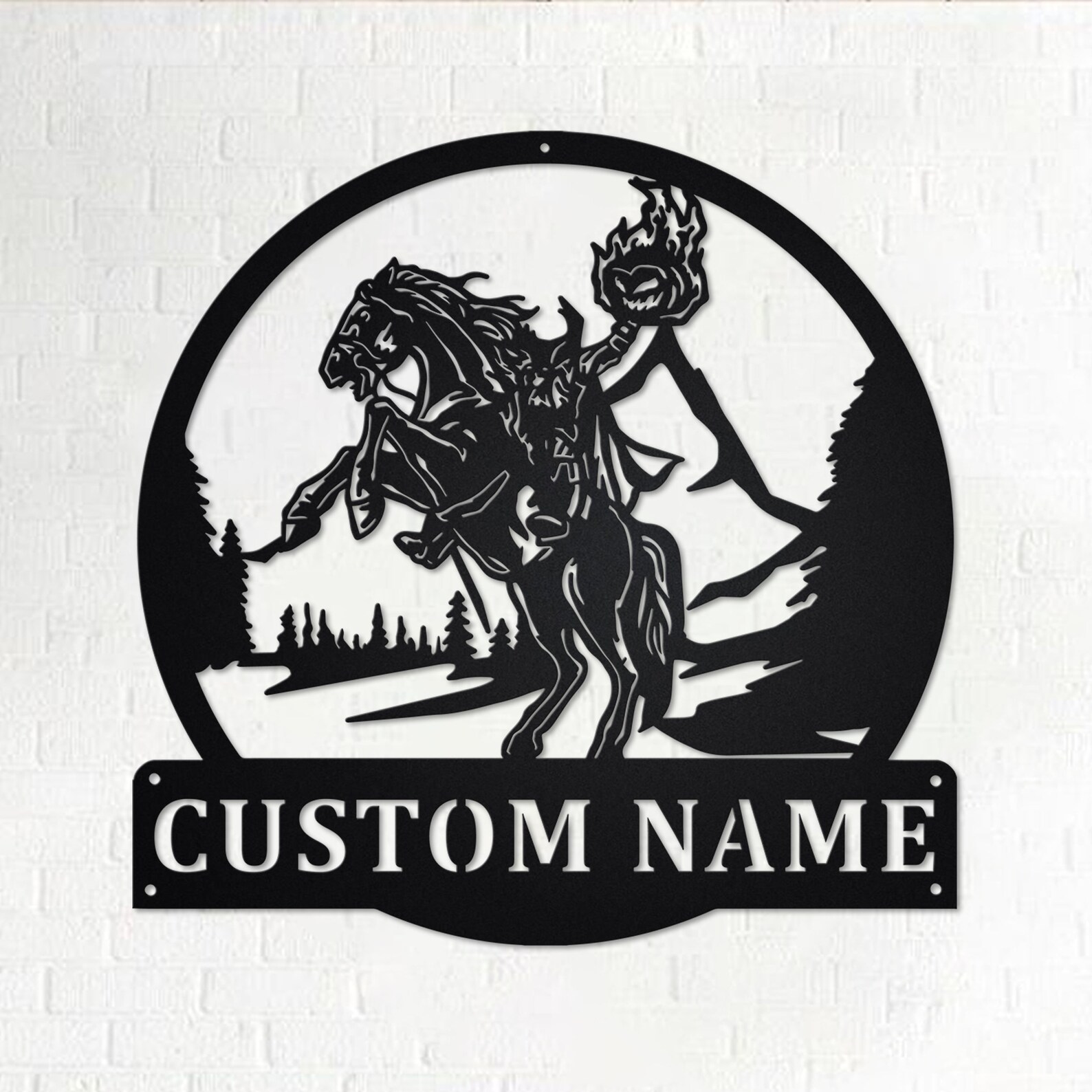 Custom Headless Horseman Metal Wall Art with LED Light, Personalized Name Sign