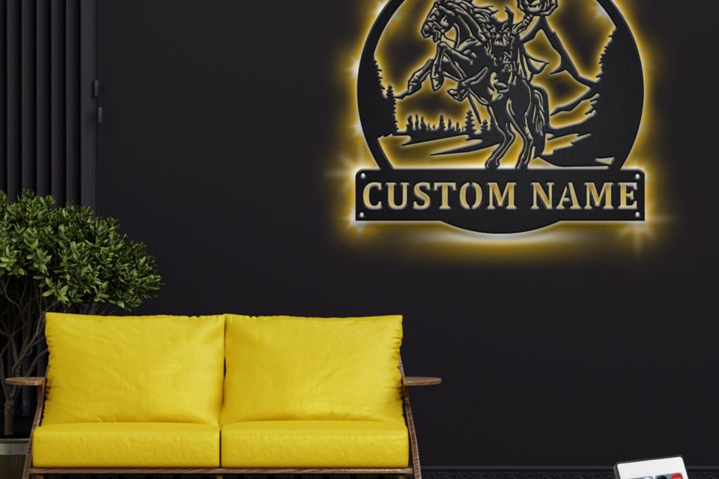 Be the first to review “Custom Headless Horseman Metal Wall Art with LED Light, Personalized Name Sign”