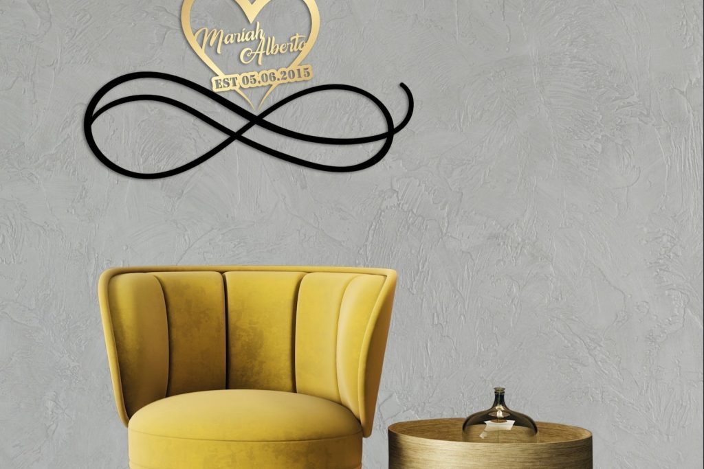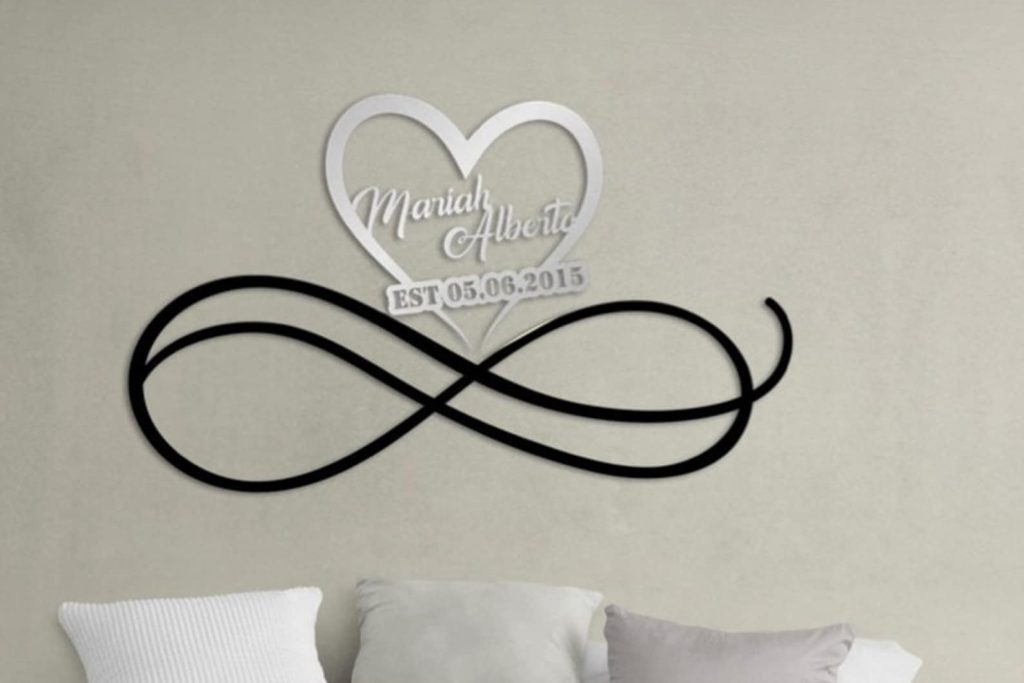 Metal Large Customized Names and Date , Heart and Infinity, Custom Metal Wall Art, Home Decoration, Wedding, New Home ,Housewarming Gift.