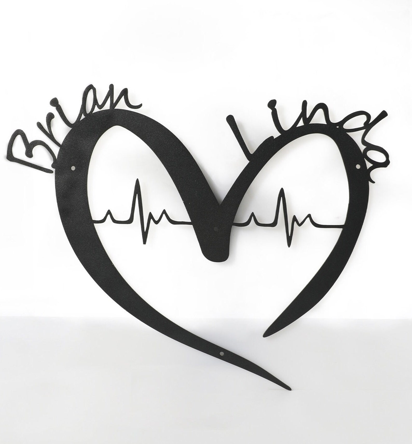 Custom Heartbeat Names Metal Sign – Wedding Gift
