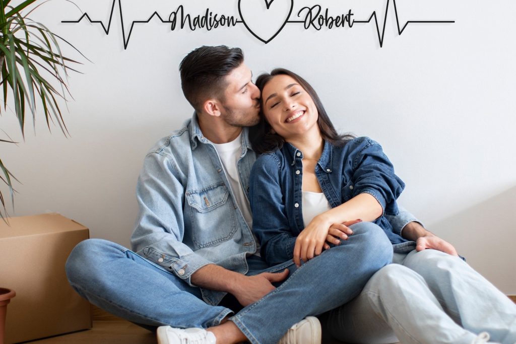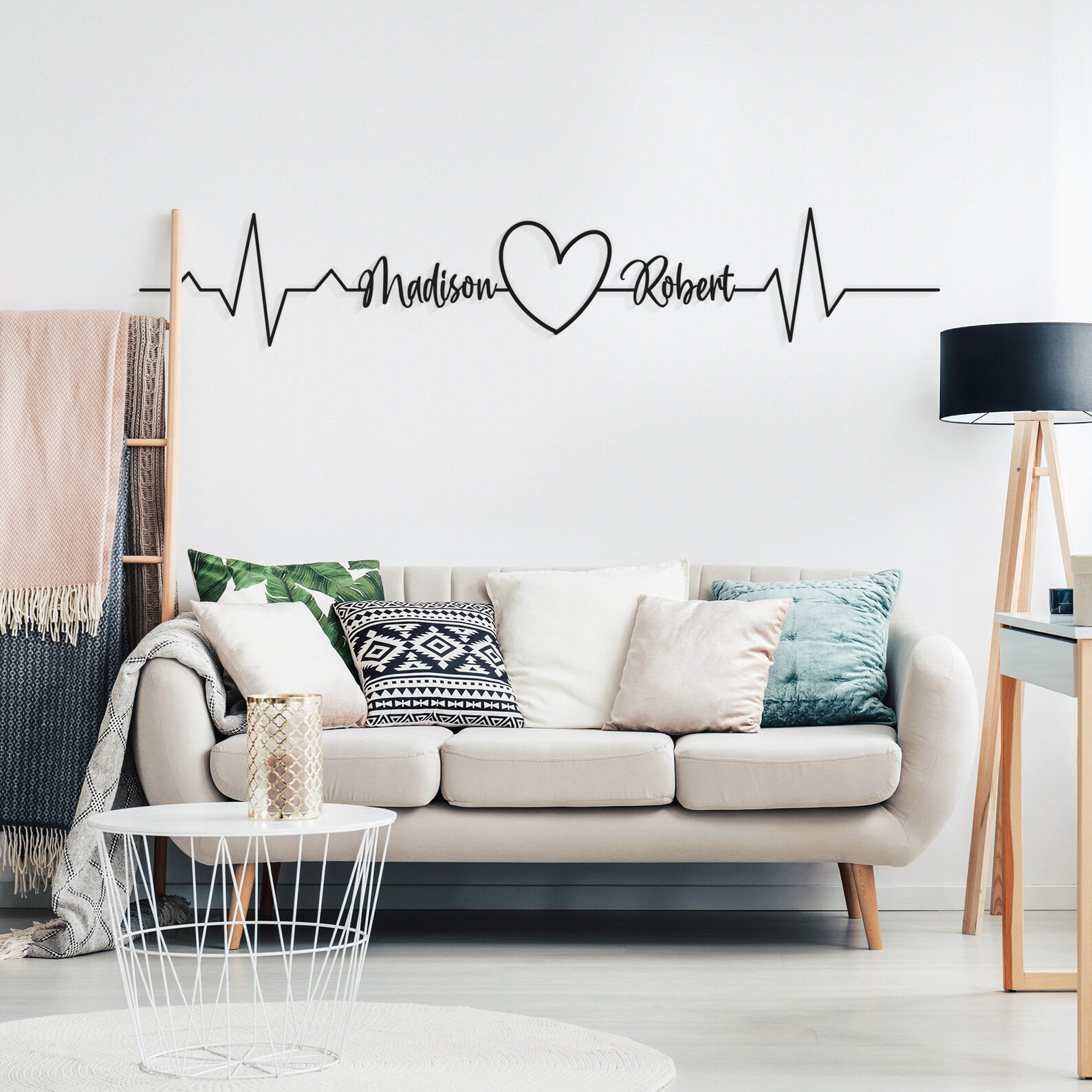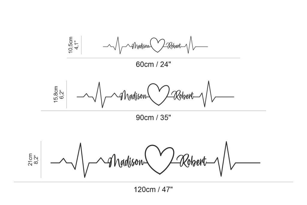 Custom named heartbeats and heart metal wall decor.