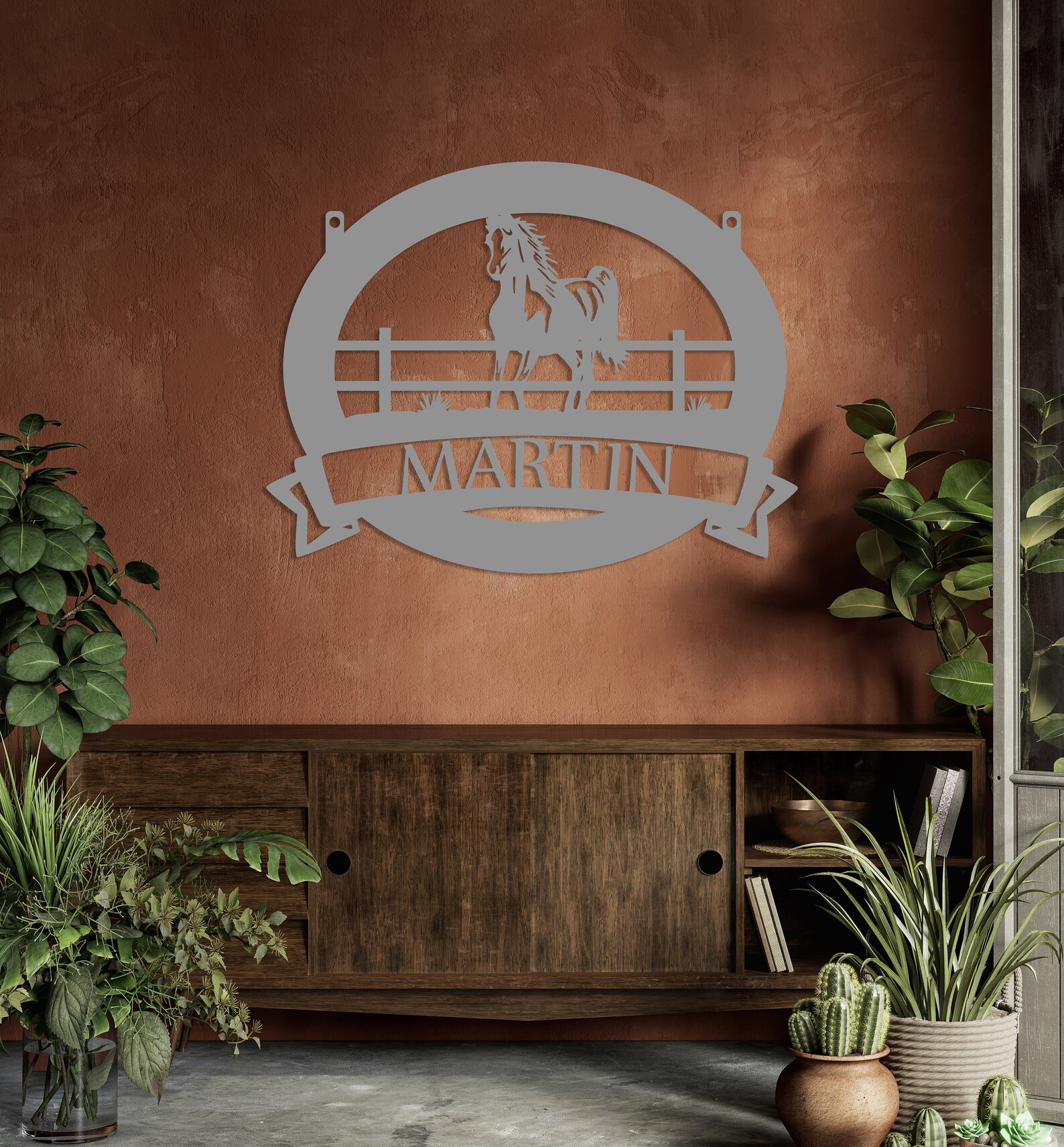 Custom Horse Metal Wall Sign, Personalized Ranch Sign, Entrance Sign, Farm Name Sign, Gate Sign, Large Outdoor Decor, Horse Decor, Home Gift