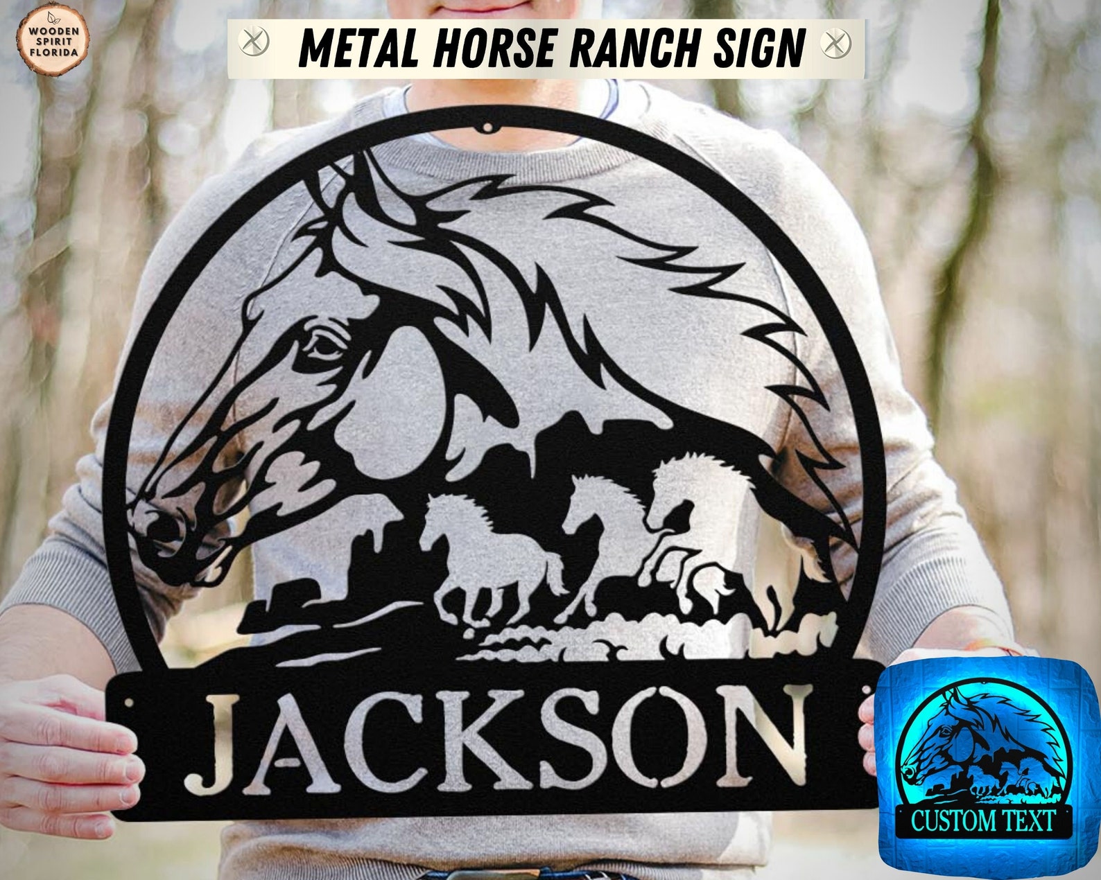 Be the first to review “Custom Horse Ranch Metal Sign with LED Light”