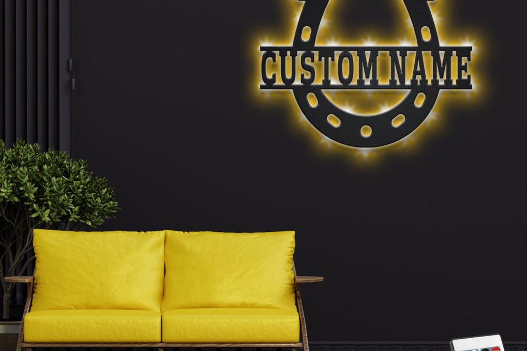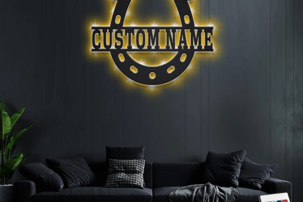 Custom Horseshoe LED Metal Art – Personalized Horse Sign