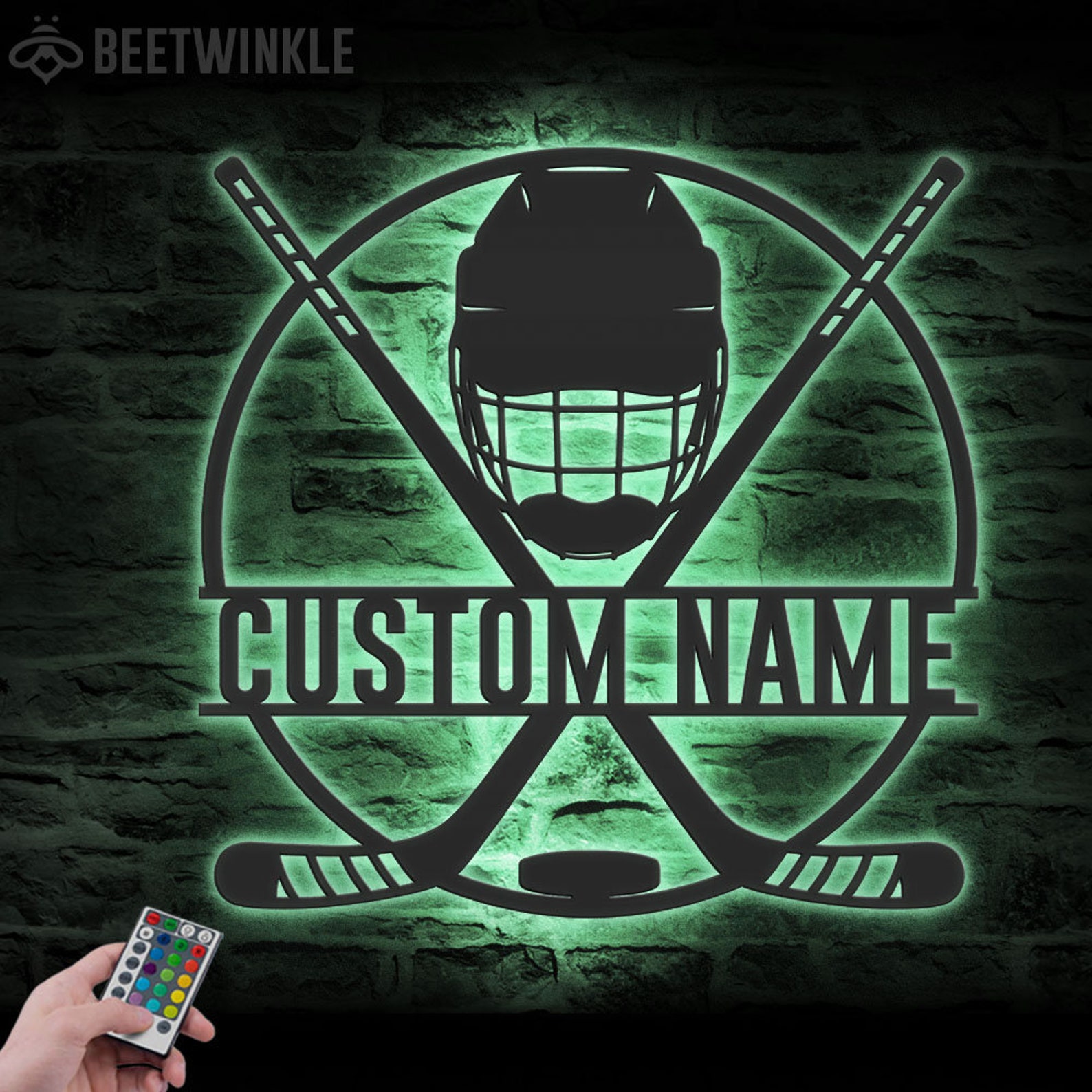 Be the first to review “Custom Ice Hockey Metal Sign, LED Light, Kid Decor”