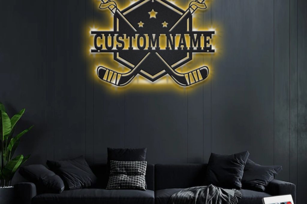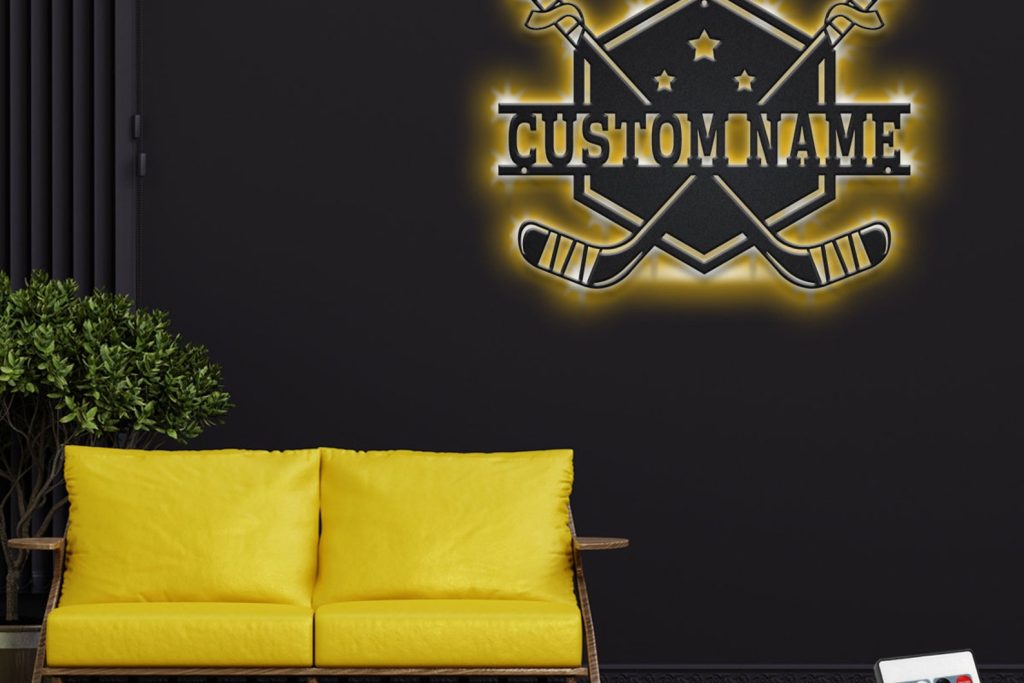 Custom Ice Hockey Metal Sign with LED – Player Room Decoration