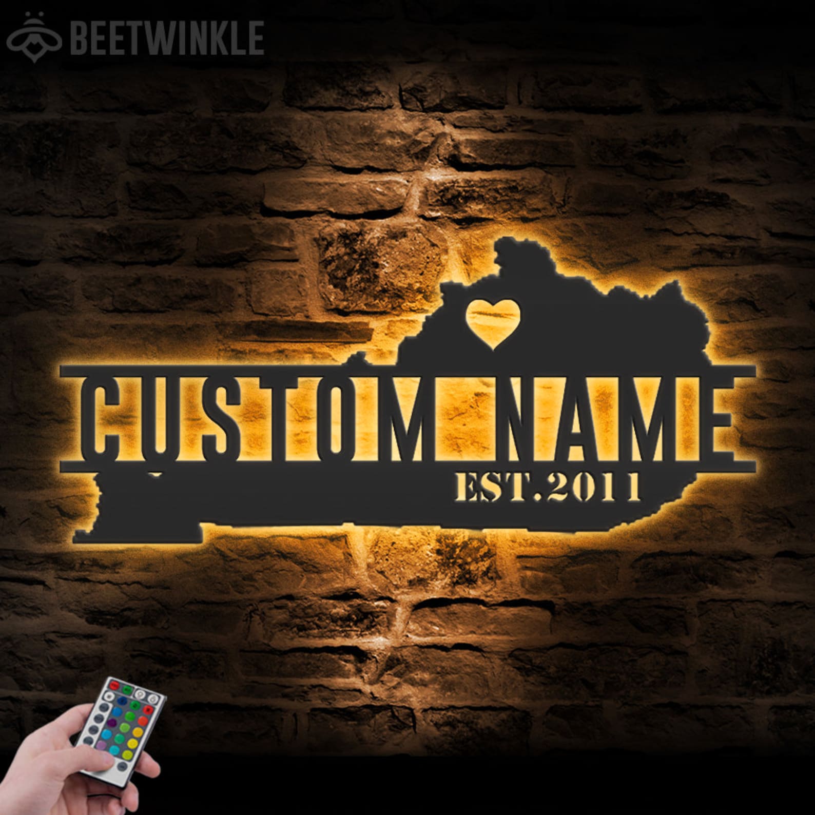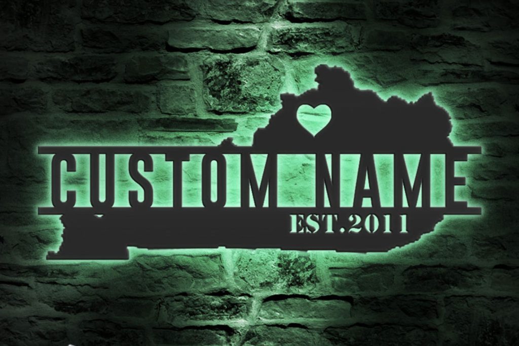 Be the first to review “Custom Kentucky Map Metal Wall Art – LED Lights, Personalized State Name Sign”