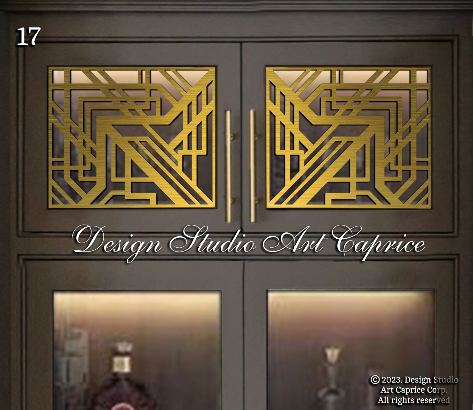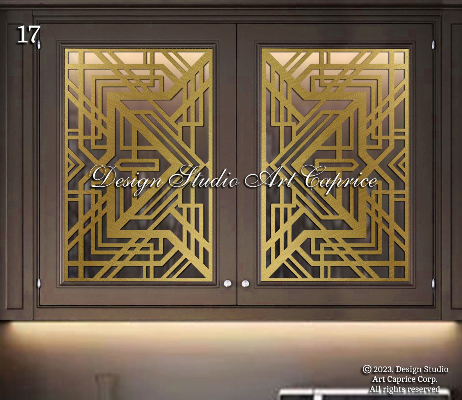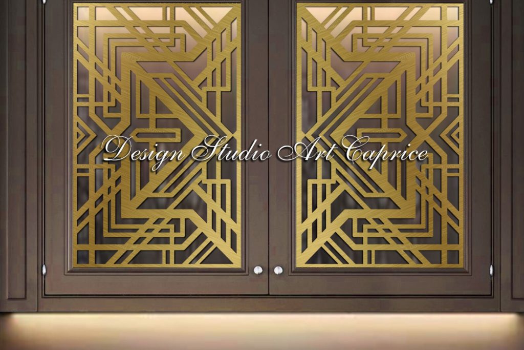 If you are looking for a custom metal mullion production for your cabinet glass door you can choose any design created by Design Studio Art Caprice for a new sophisticated look of your kitchen/wine cabinet glass doors. Compared to other materials, metal mullion inserts possess a much more luxurious look. It will last for long years as a beautiful part of the interior design.
