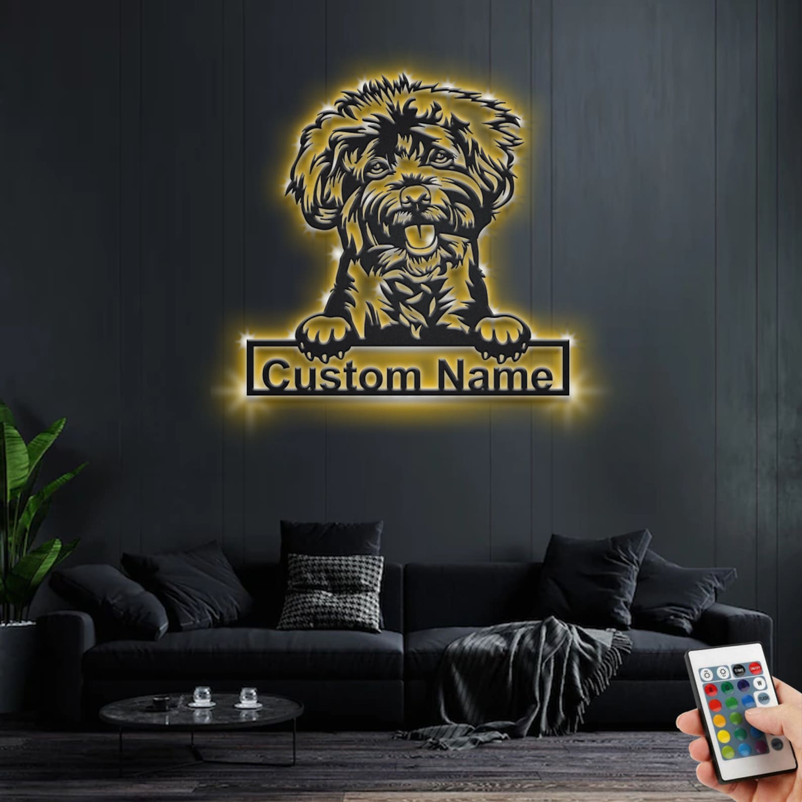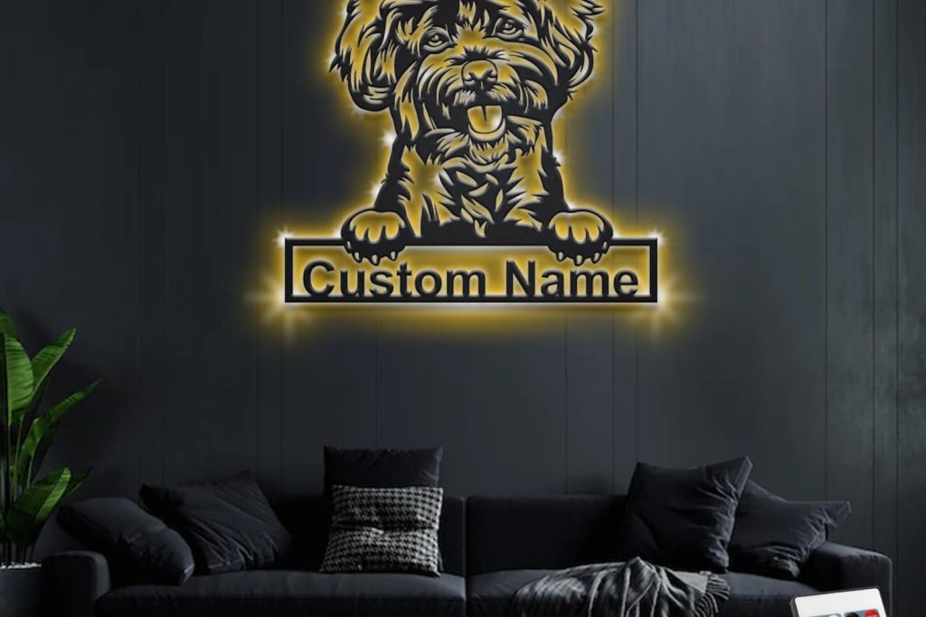 Custom Labradoodle LED Metal Art – Personalized Dog Name Sign