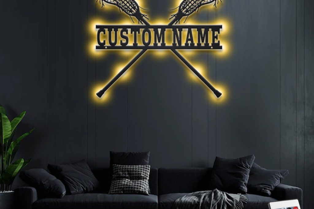 Custom Lacrosse Sticks Metal Art with LED Light