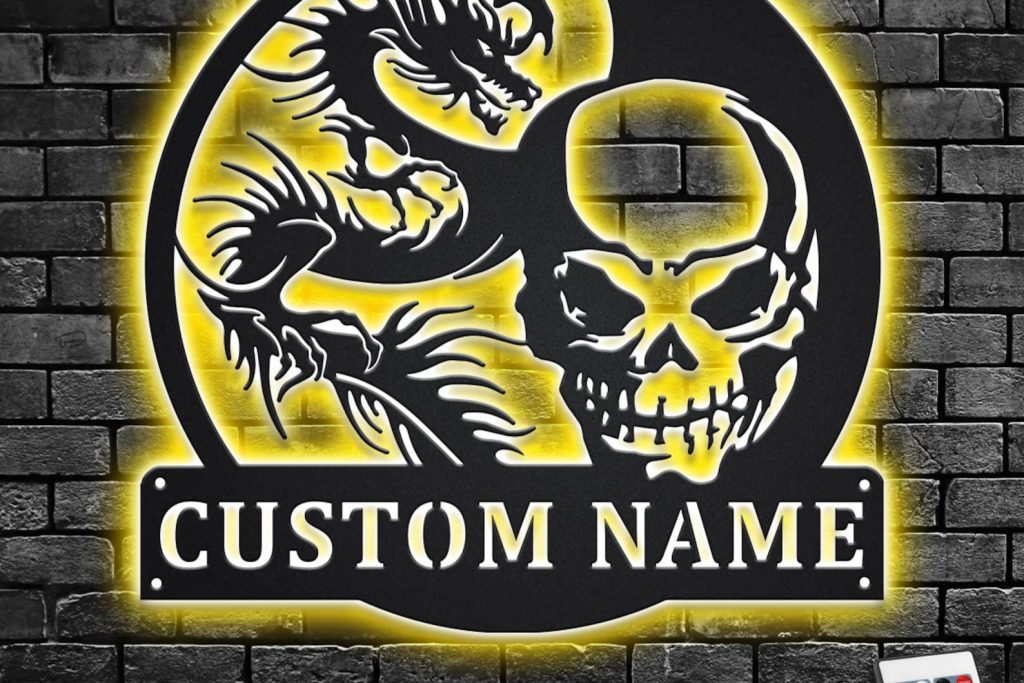 Custom LED Skull & Dragon Art – Gothic Wall Decor