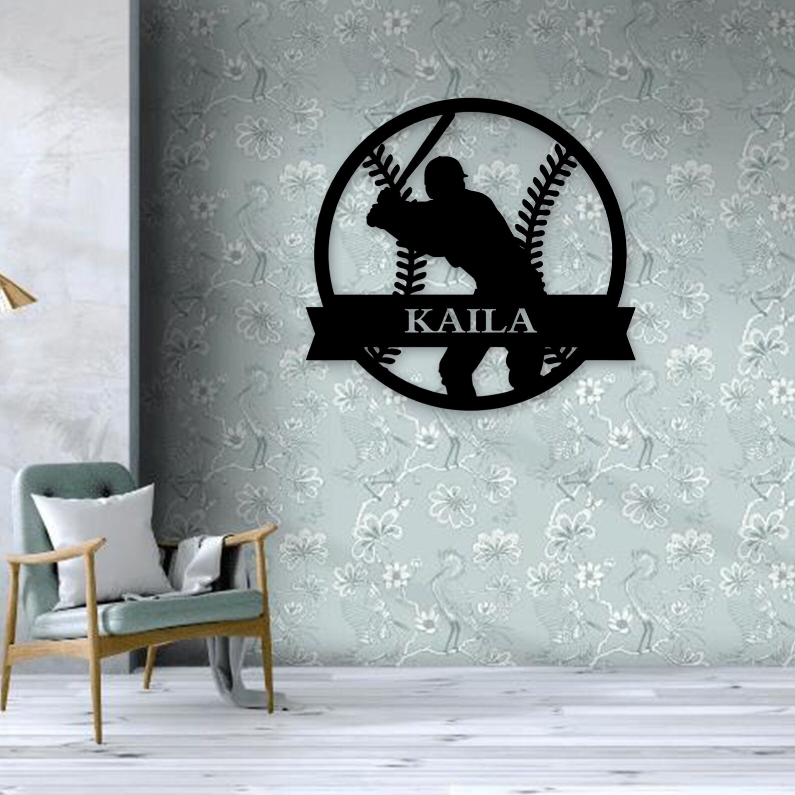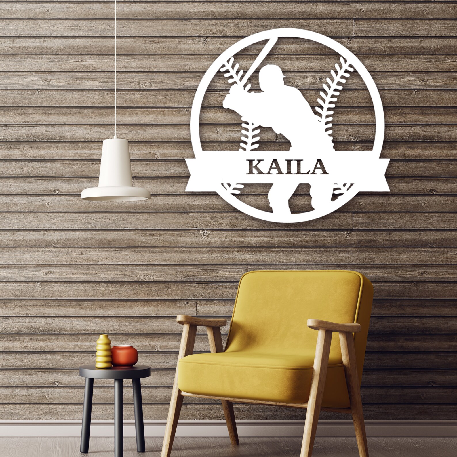 The Custom Metal Baseball Name Sign is a stylish and personalized home decor piece that is perfect for any baseball enthusiast. Handmade with meticulous attention to detail, this metal sign is made of solid 14 gauge cold rolled American steel to ensure durability and longevity. It is also powder coated with a black finish, making it resistant to all elements, whether placed indoors or outdoors.