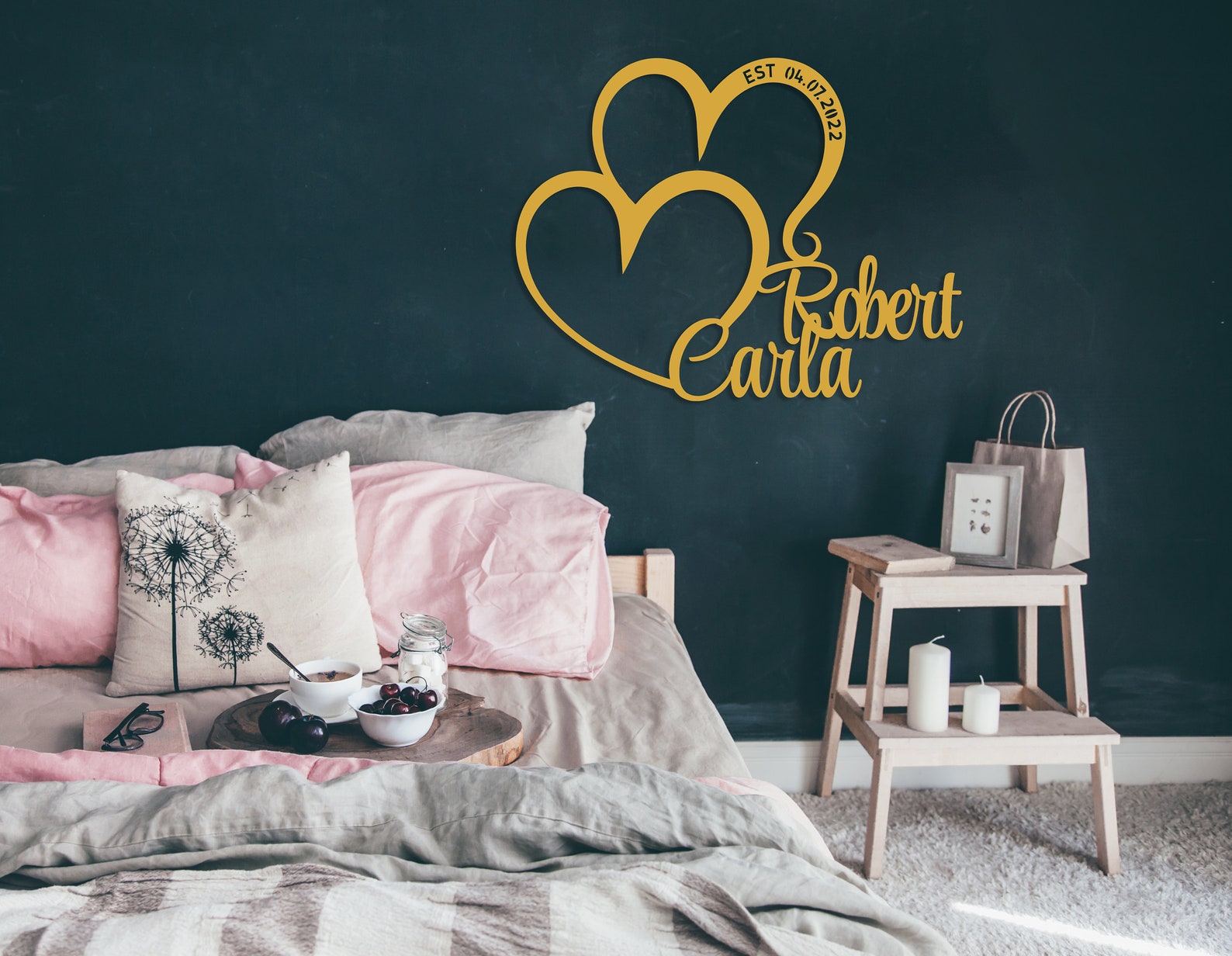Custom Metal Wedding Gift for Couple, Personalized Family Name and Date Sign, Heart Sign, Anniversary Gift, Valentines Day, Metal Wall Decor