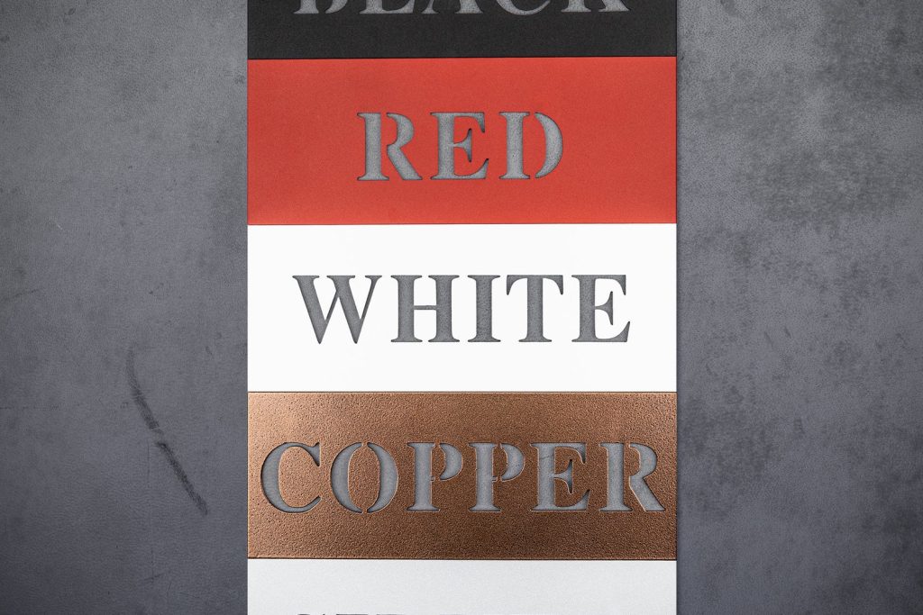 The mid century address sign is powdered with 5 available color options:
