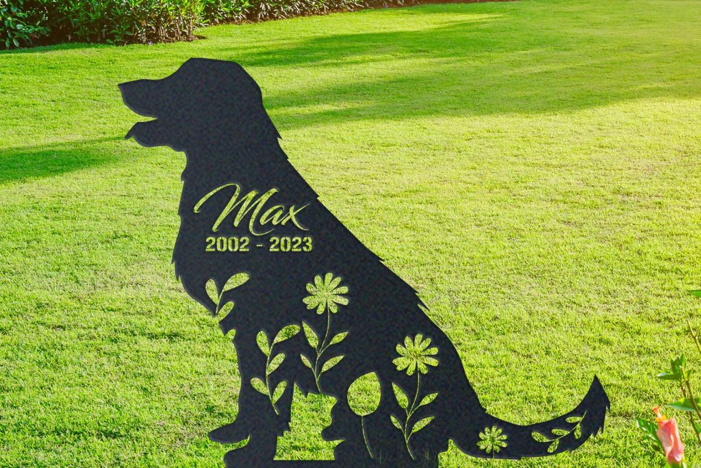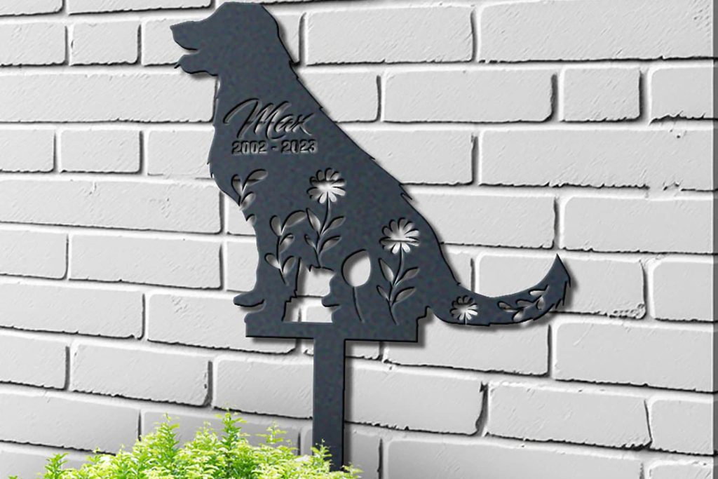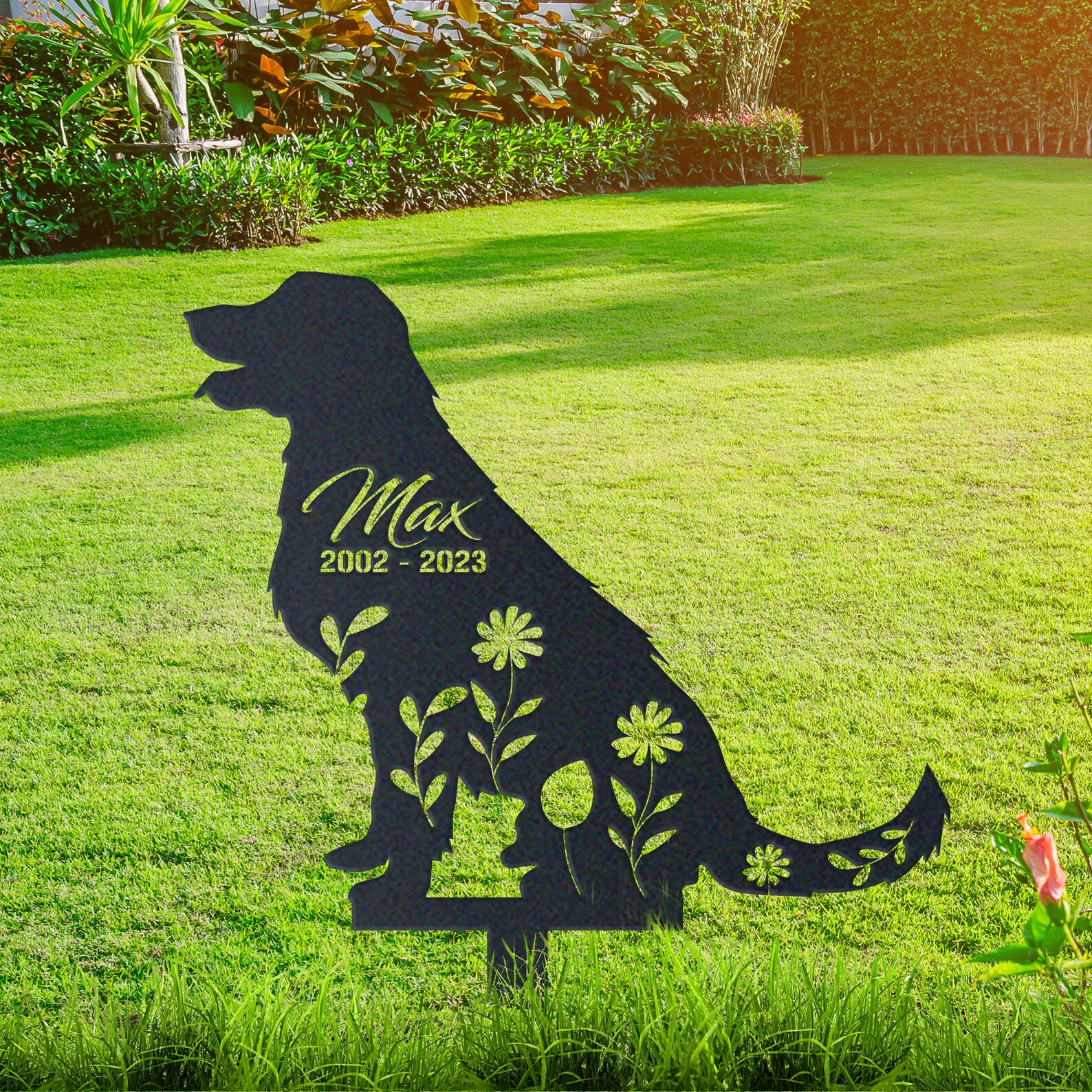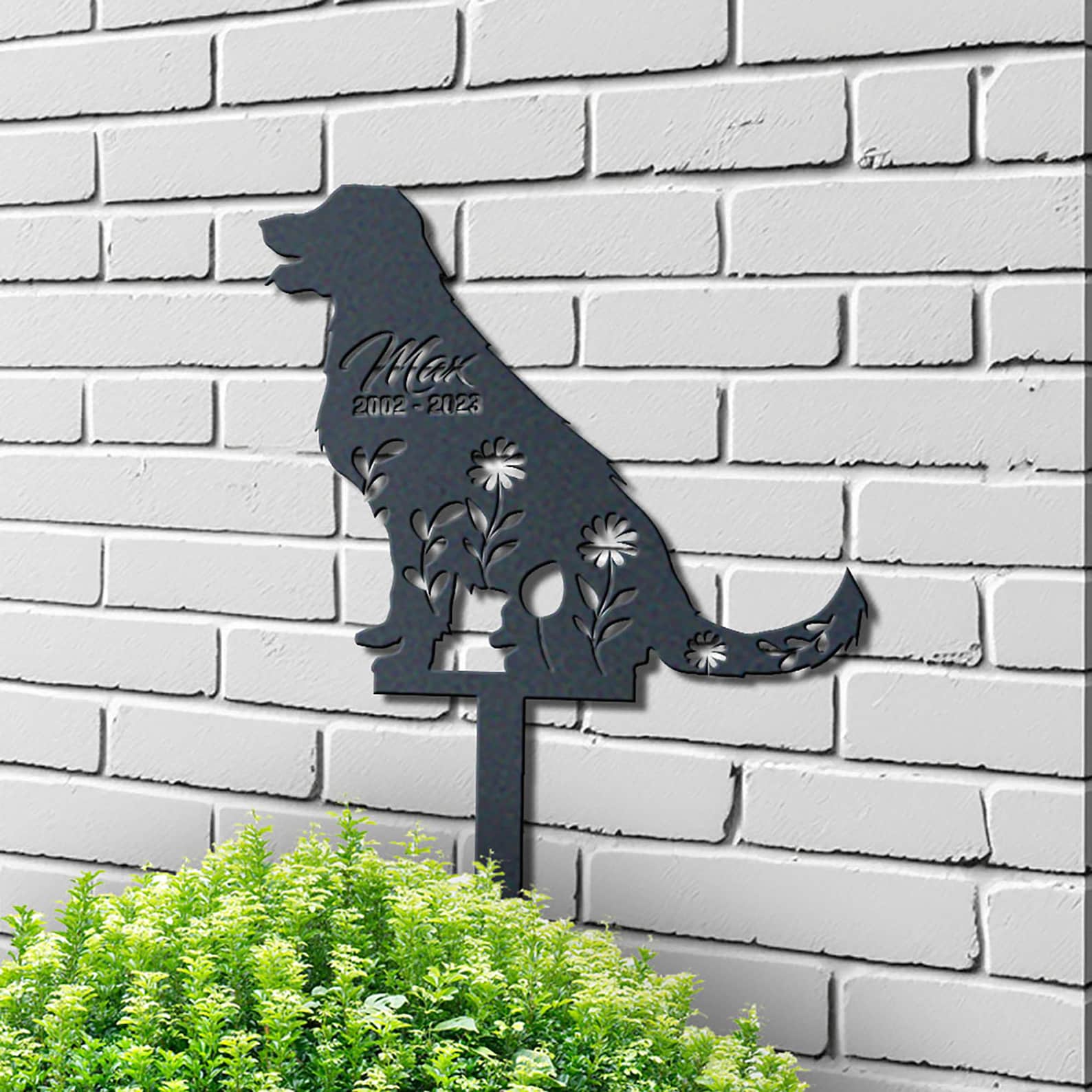 The stake features a unique design with Golden Retriever silhouette, a name of your choosing, and date for you to add a special memento. It is made from a sturdy steel with powder coated.