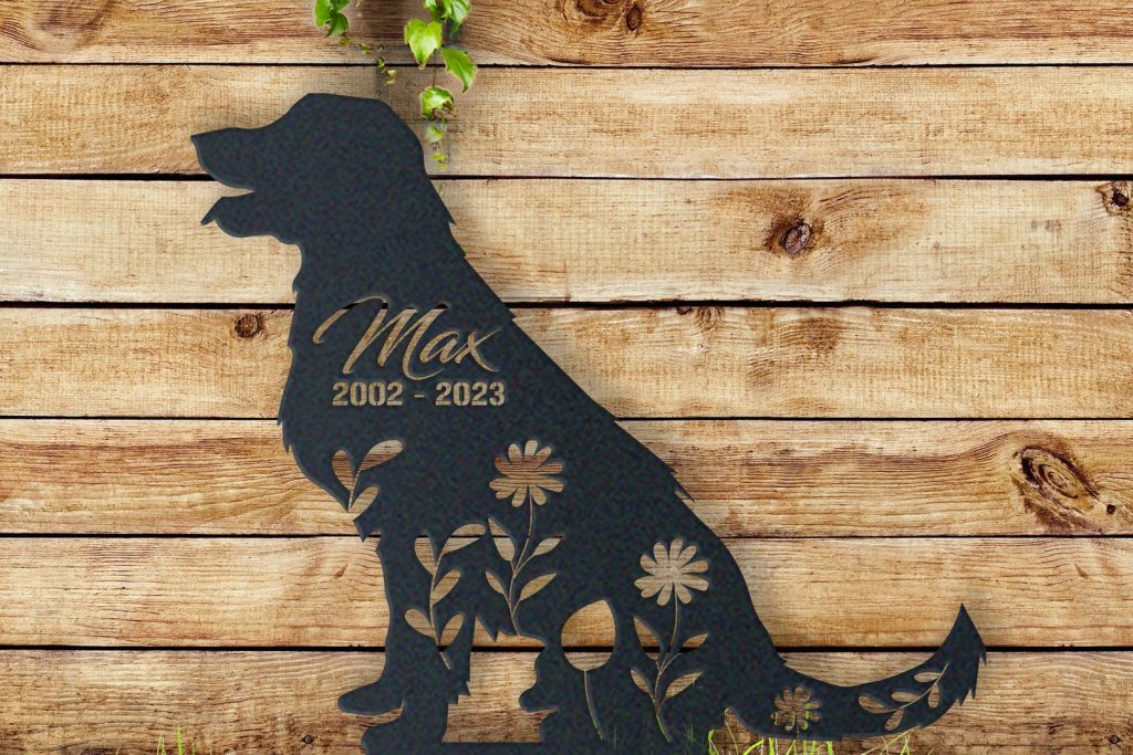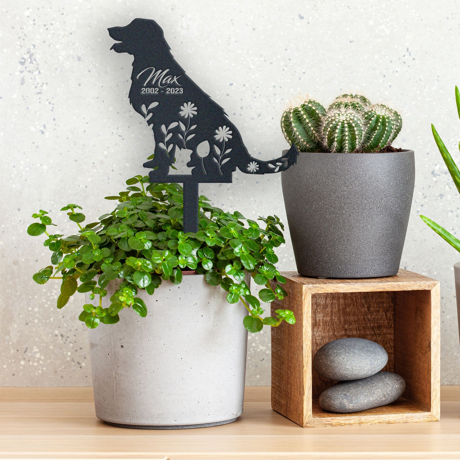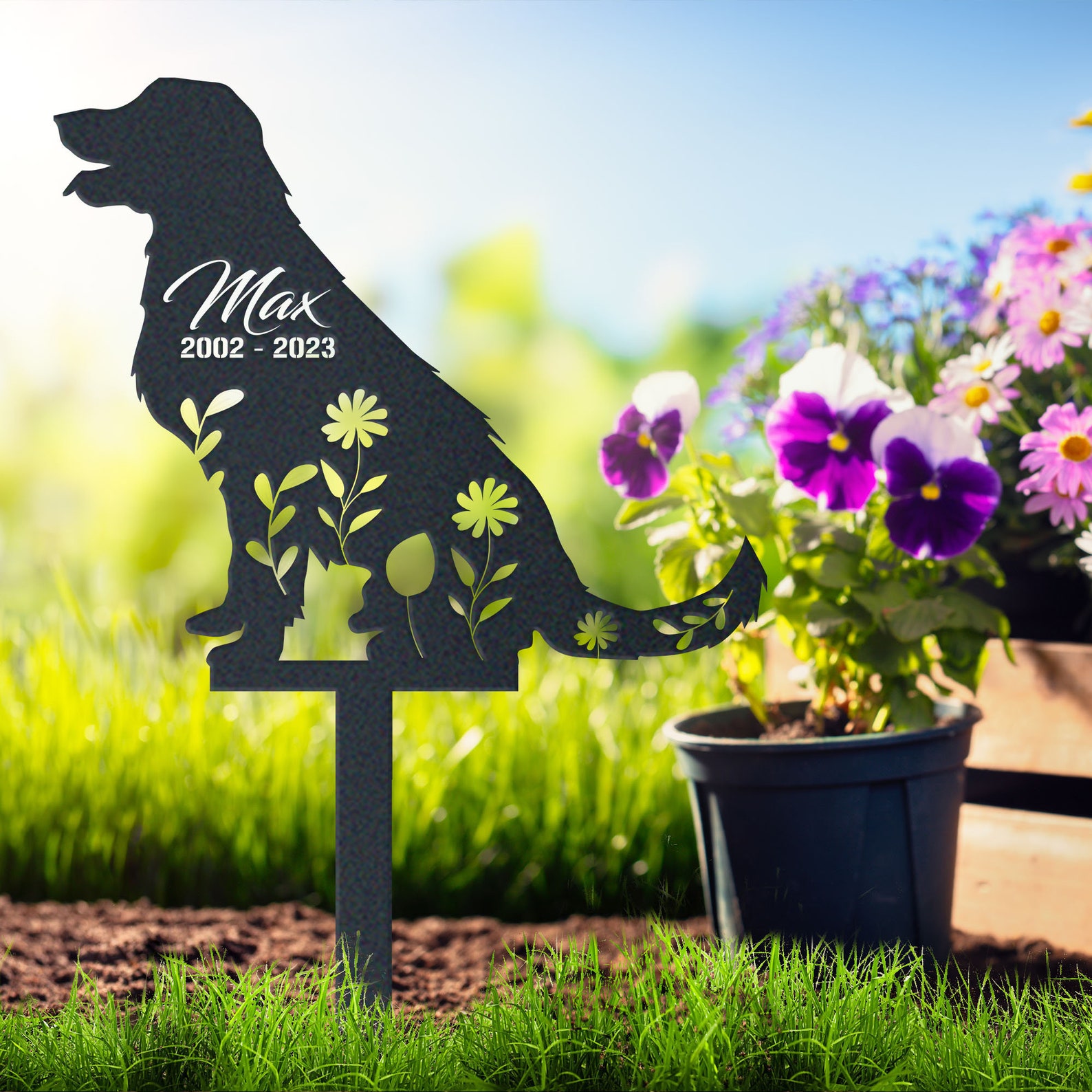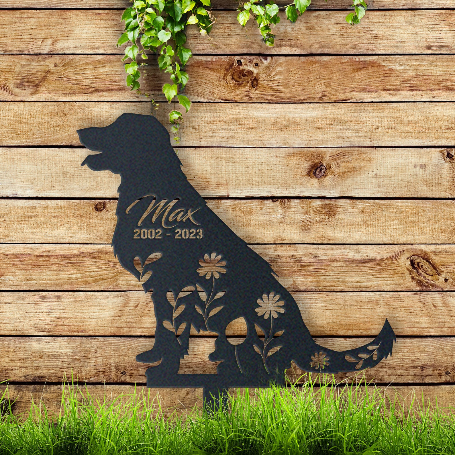 The stake features a unique design with Golden Retriever silhouette, a name of your choosing, and date for you to add a special memento. It is made from a sturdy steel with powder coated.