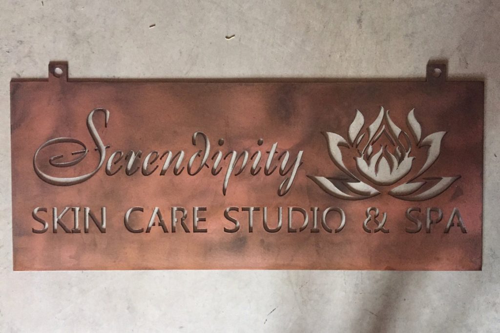 Sign measures 30"" or 36x 18" or 48" or 56" and is finished in gorgeous bronze acid wash with baked on clear coat or black powder coat.