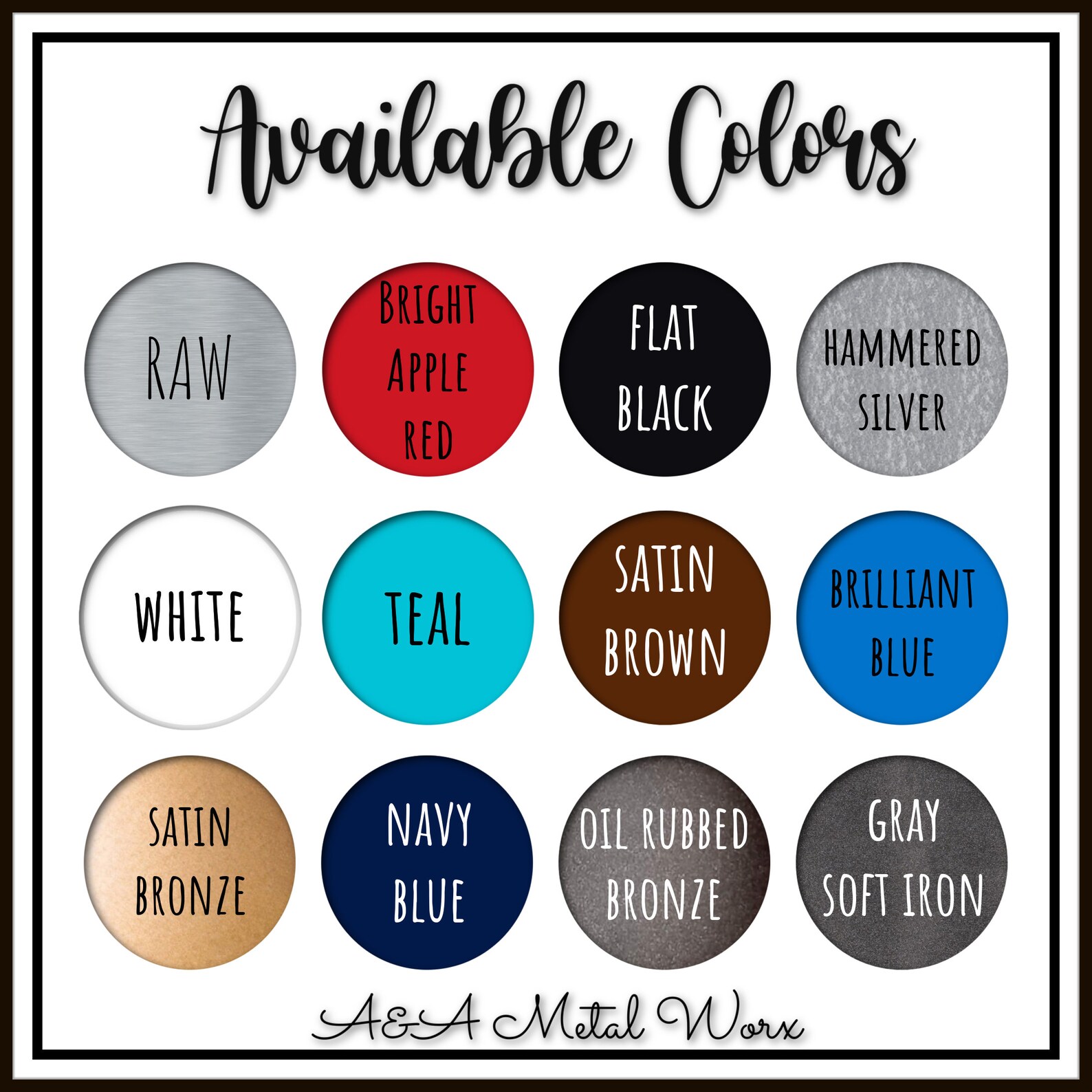 The "CUSTOM" Word Sign is available in Black, White, Blue, Satin Bronze, Hammered SILVER, Teal, Red and Oil R Bronze.