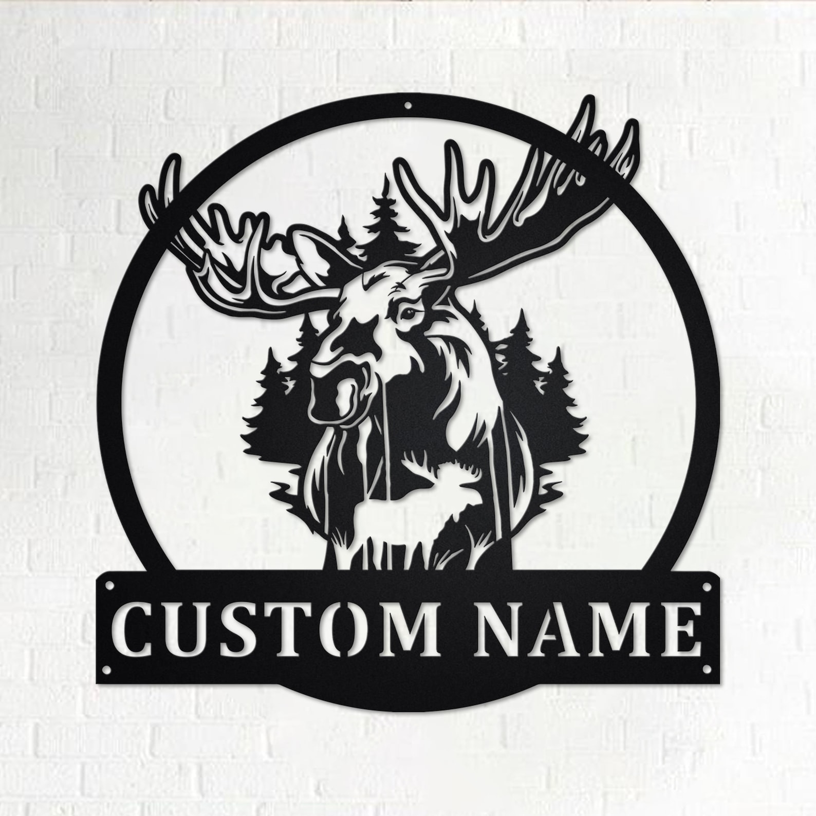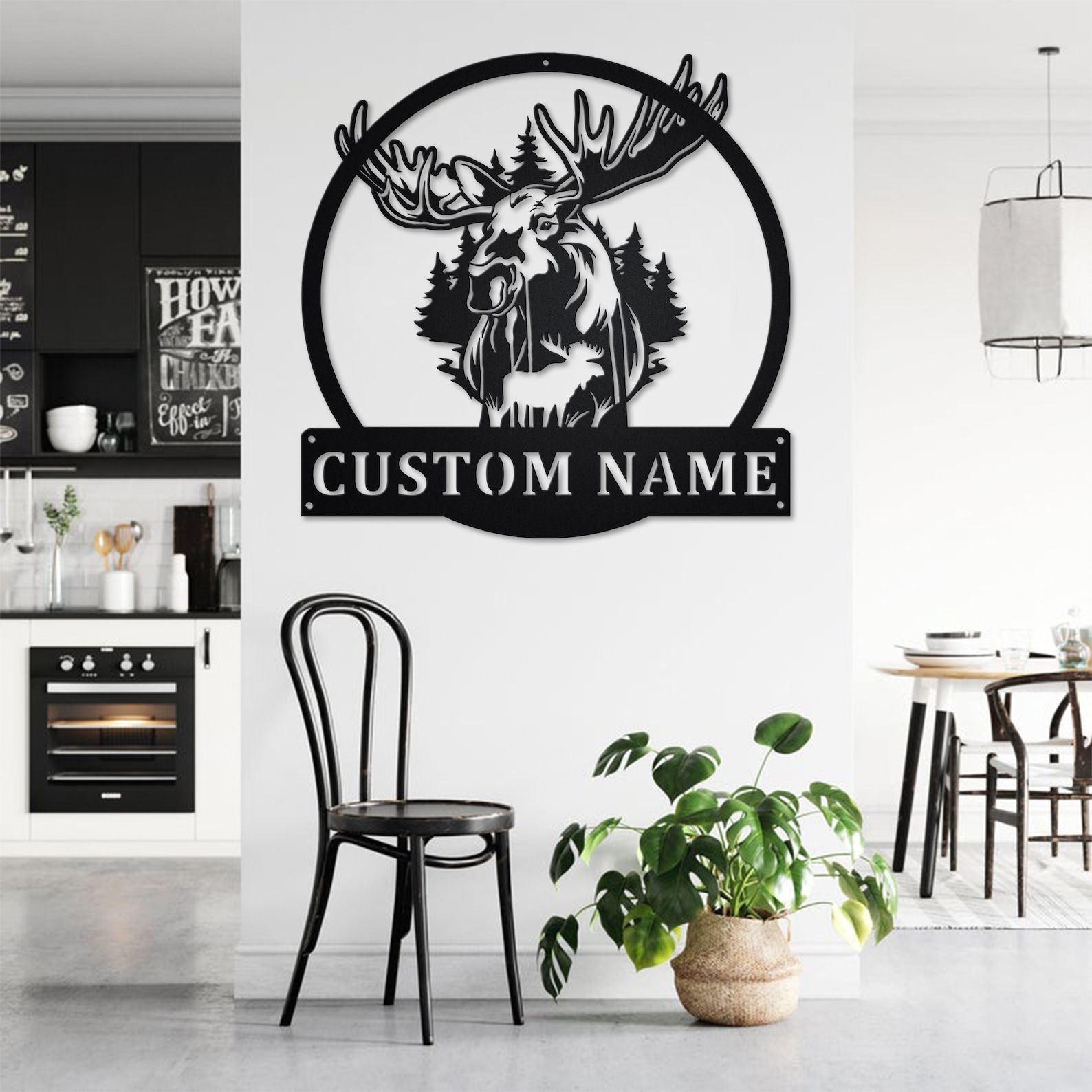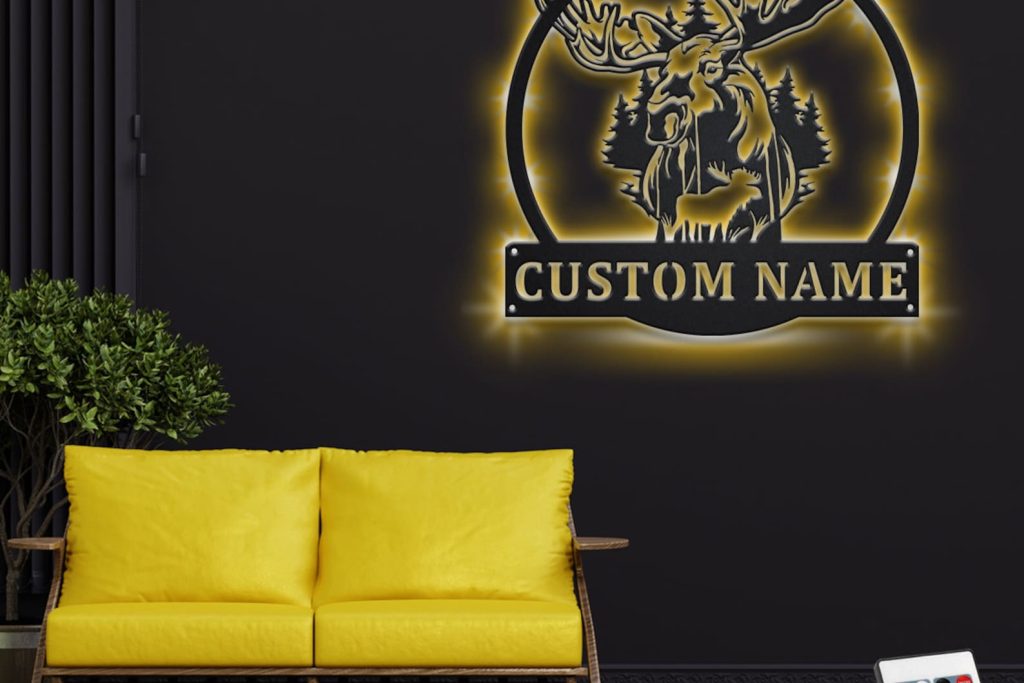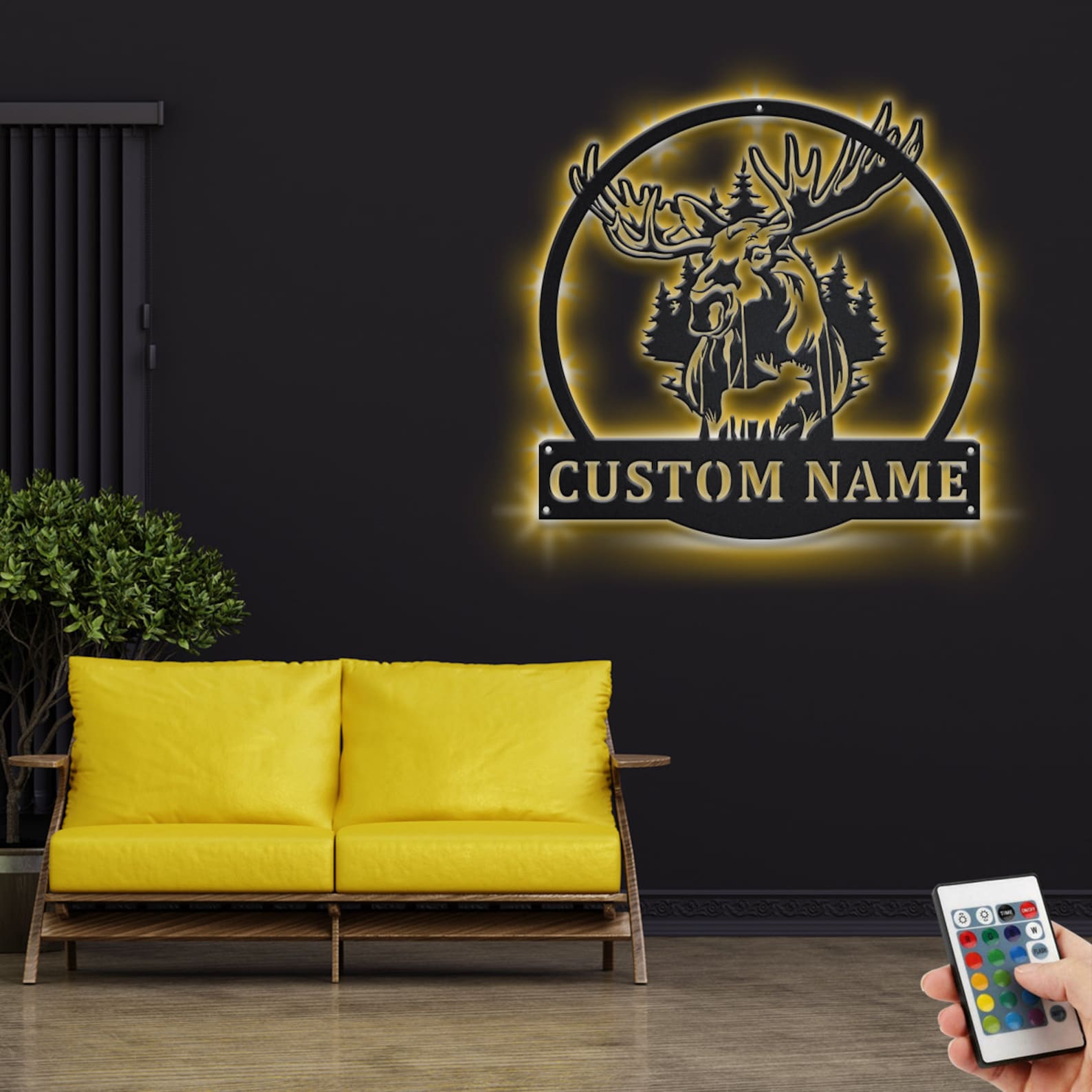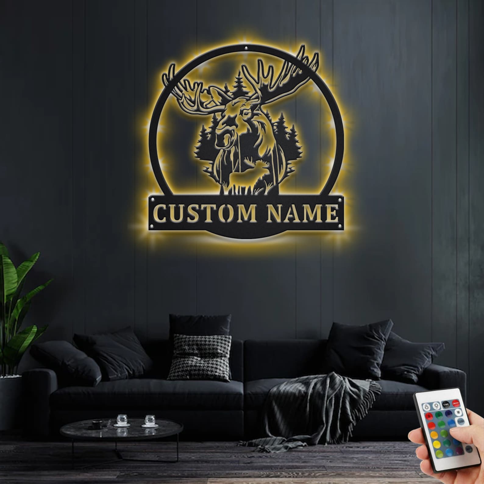 Custom Moose Metal Wall Art with LED Light, Personalized Name Sign