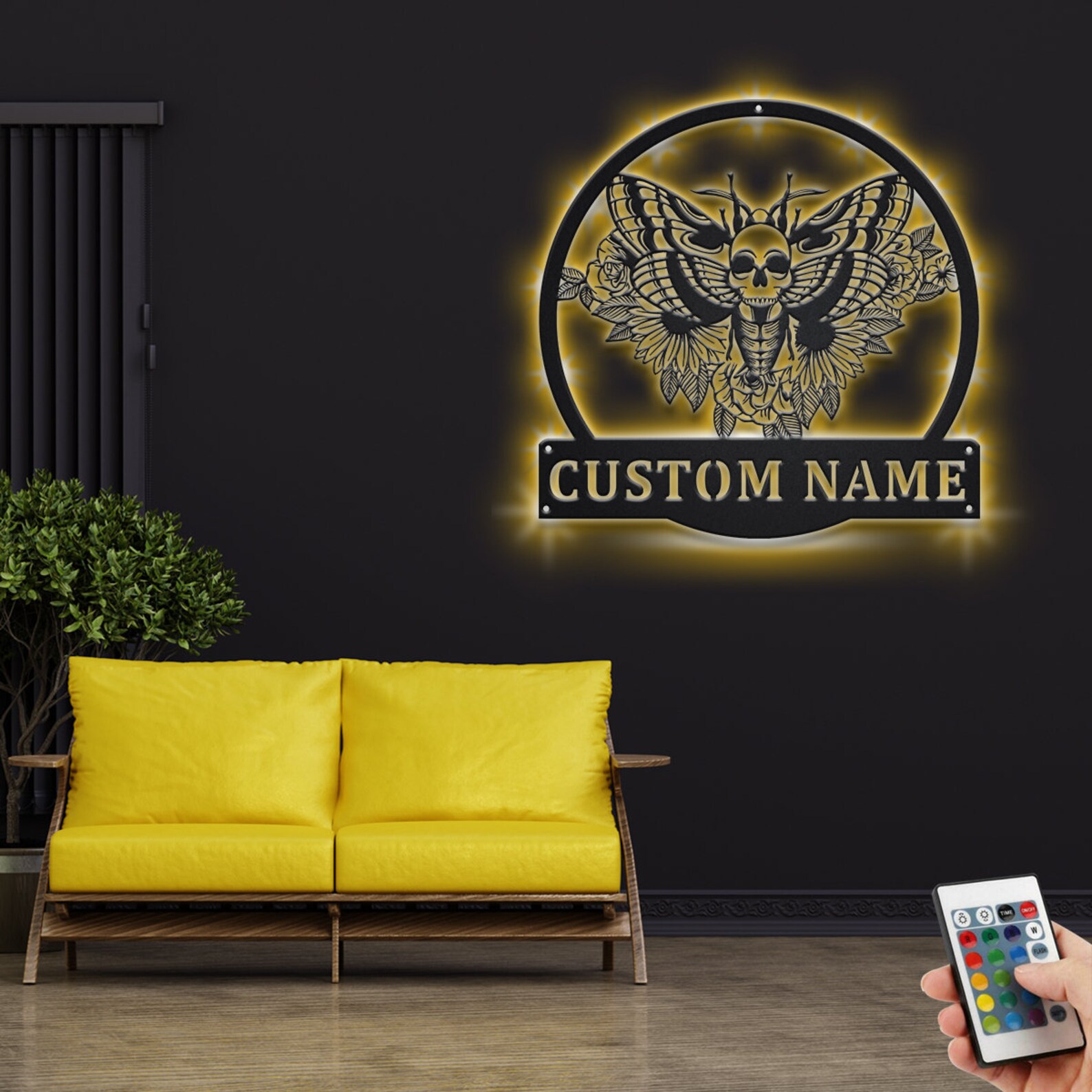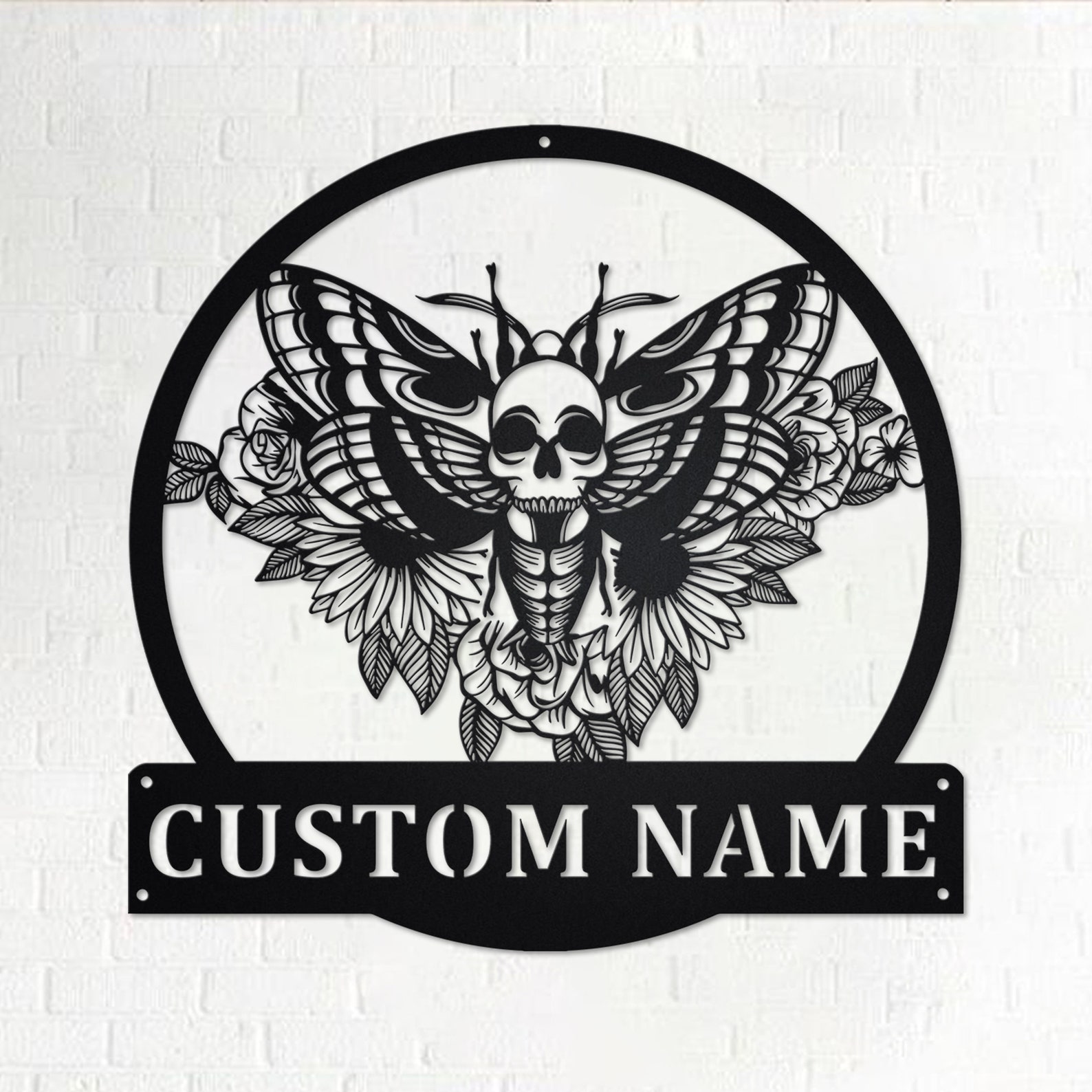 Custom Moth Skull Sign, Personalized LED Decor