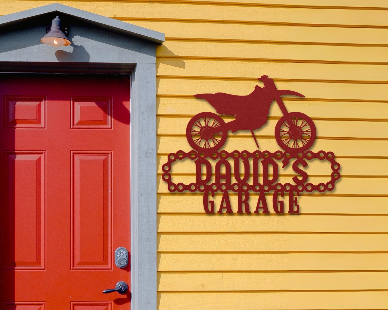 Add a unique touch to your garage or workshop with this Custom Motorcycle Metal Sign. This personalized biker name sign is the perfect addition to any Harley enthusiast9;s space, making it a great housewarming gift. Constructed with high-quality metal, this durable sign is designed to last for years to come. Showcase your love for motorcycles and personalize your space with this one-of-a-kind garage sign.