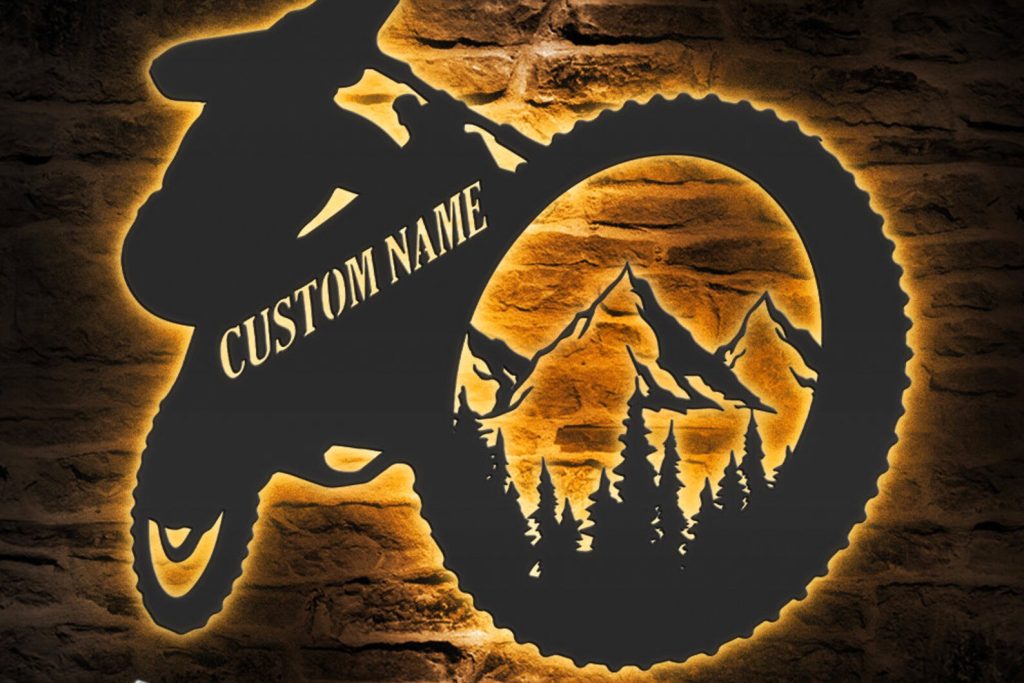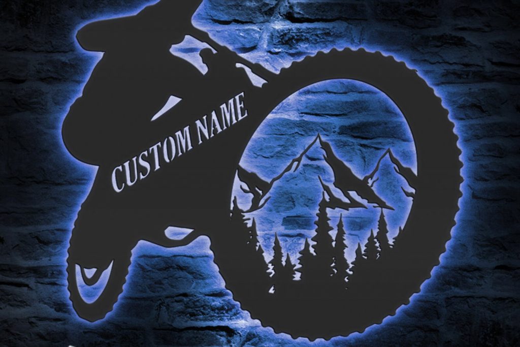 Be the first to review “Custom Mountain Bike Metal Art with LED & Name”