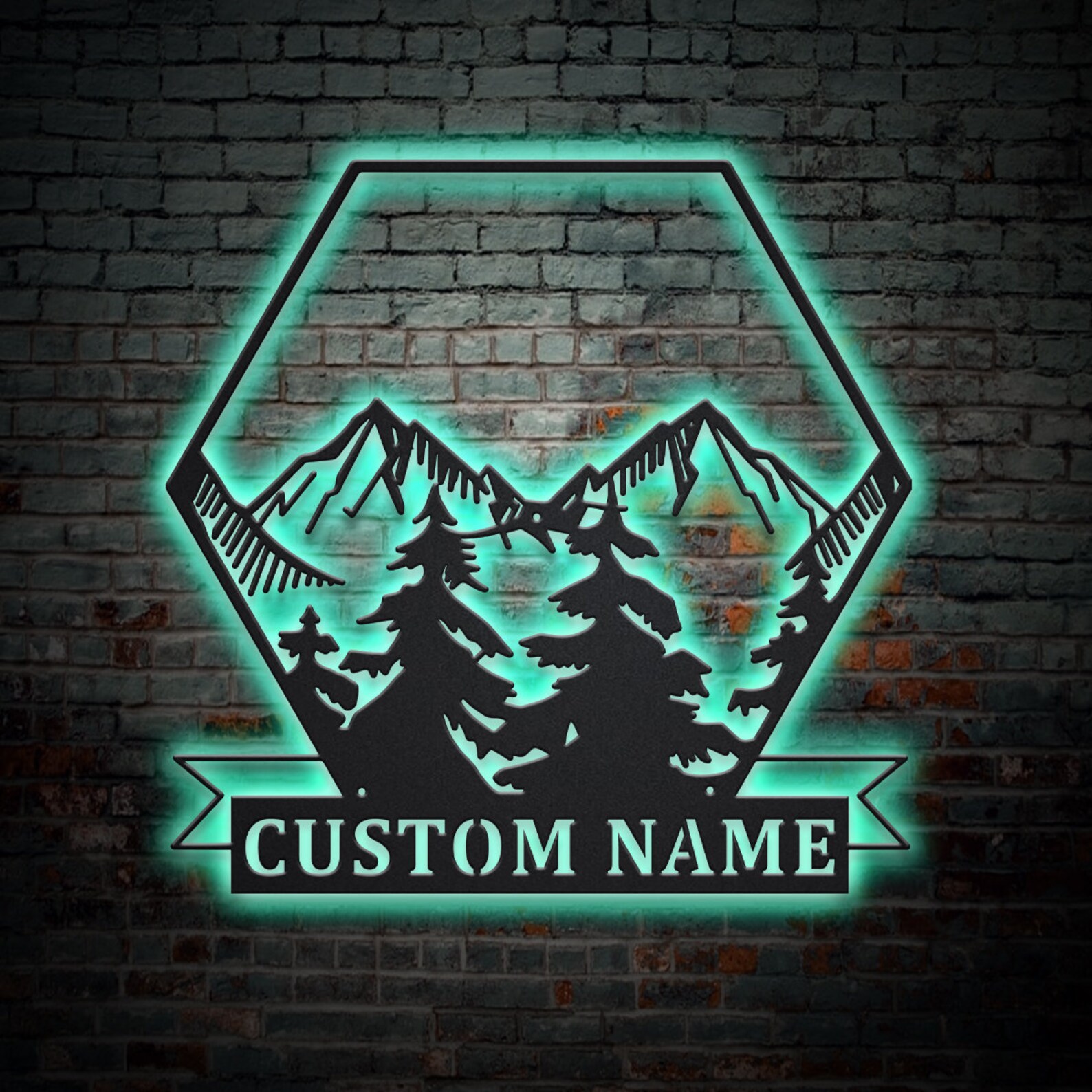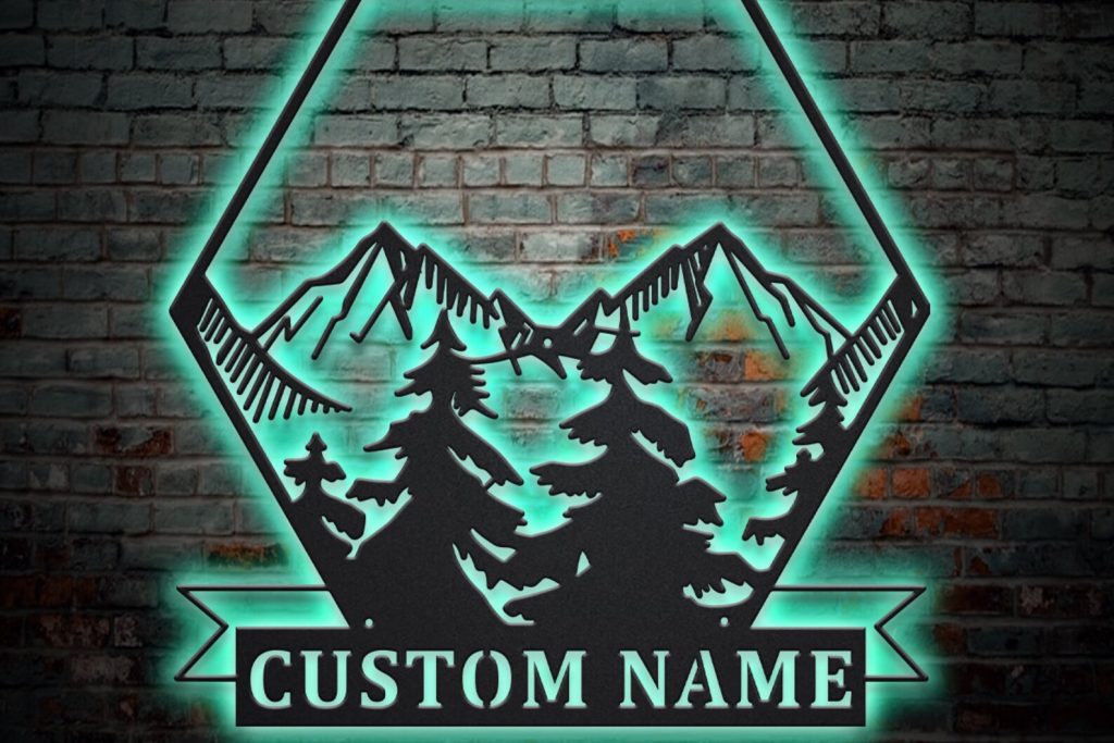 Be the first to review “Custom Mountains Metal Sign with LED V9 – Wall Decor”