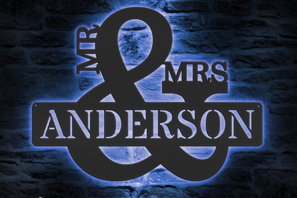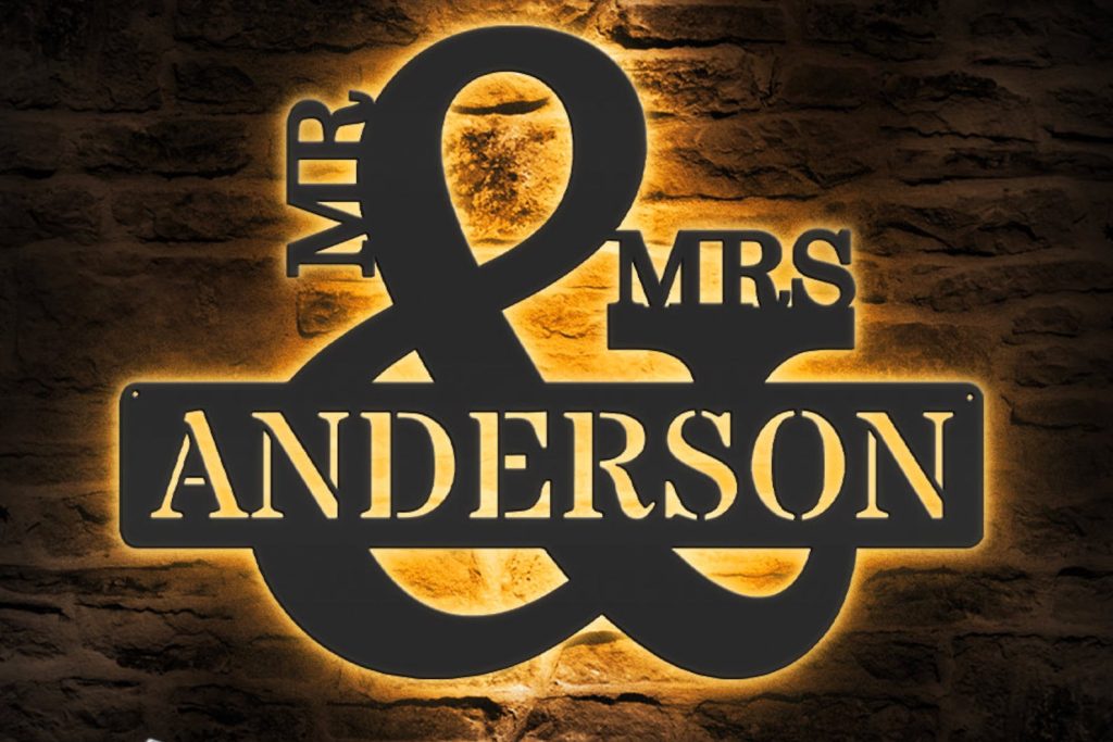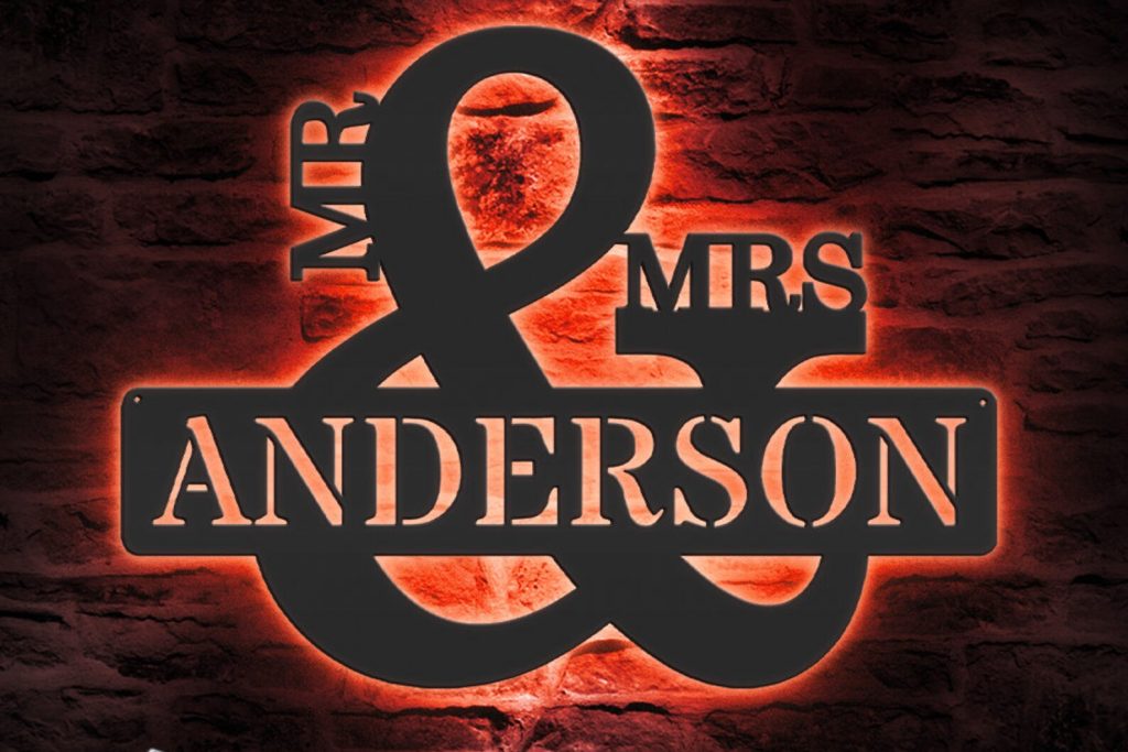Be the first to review “Custom Mr & Mrs Metal Sign with LED – Wedding Decor”