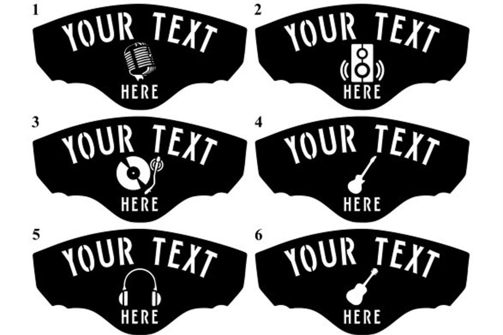 Personalize this sign with two lines of text and choose from one of the following design options: Microphone, Speaker, Record and Turntable, Electric Guitar, Headphones, or Acoustic Guitar. Enter the et text and design option that you would like in the personalization box!