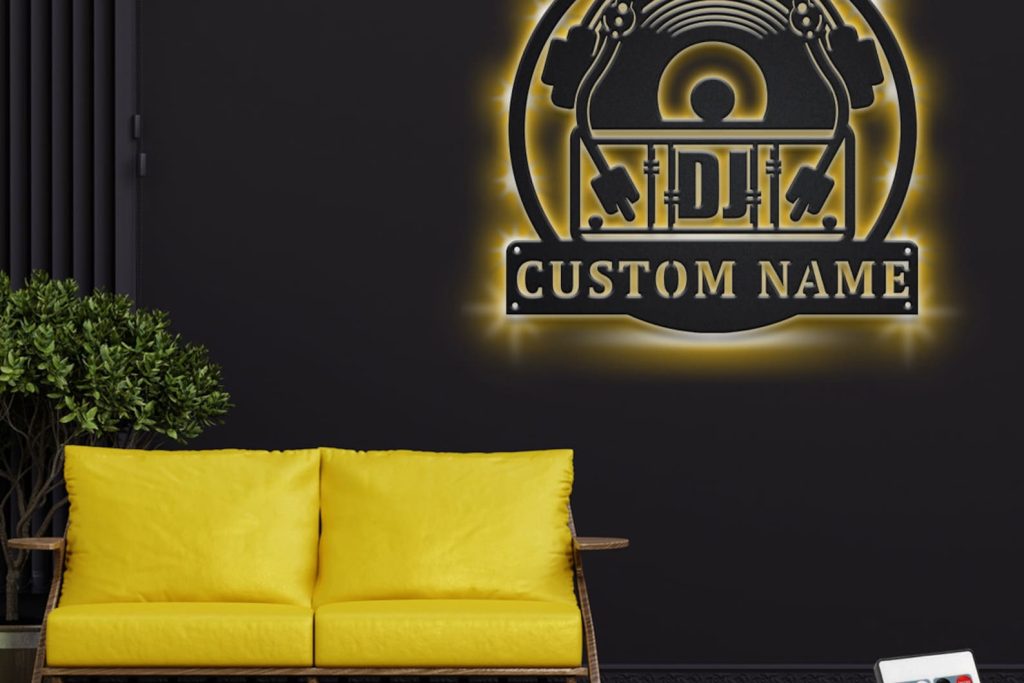 Custom Music Turntable Metal Wall Art with LED & DJ Name