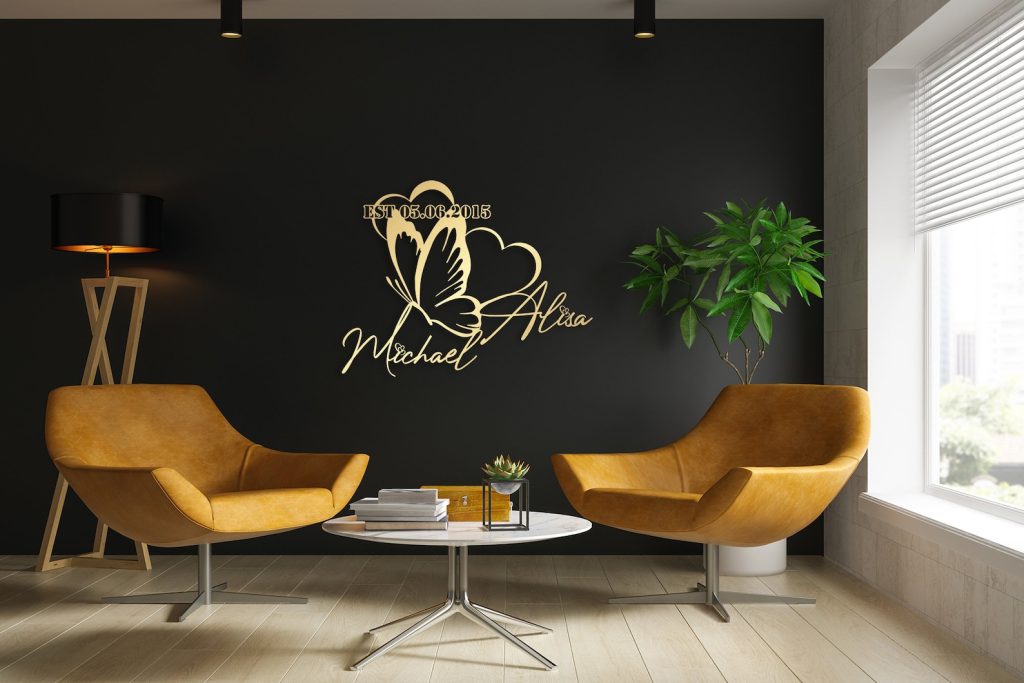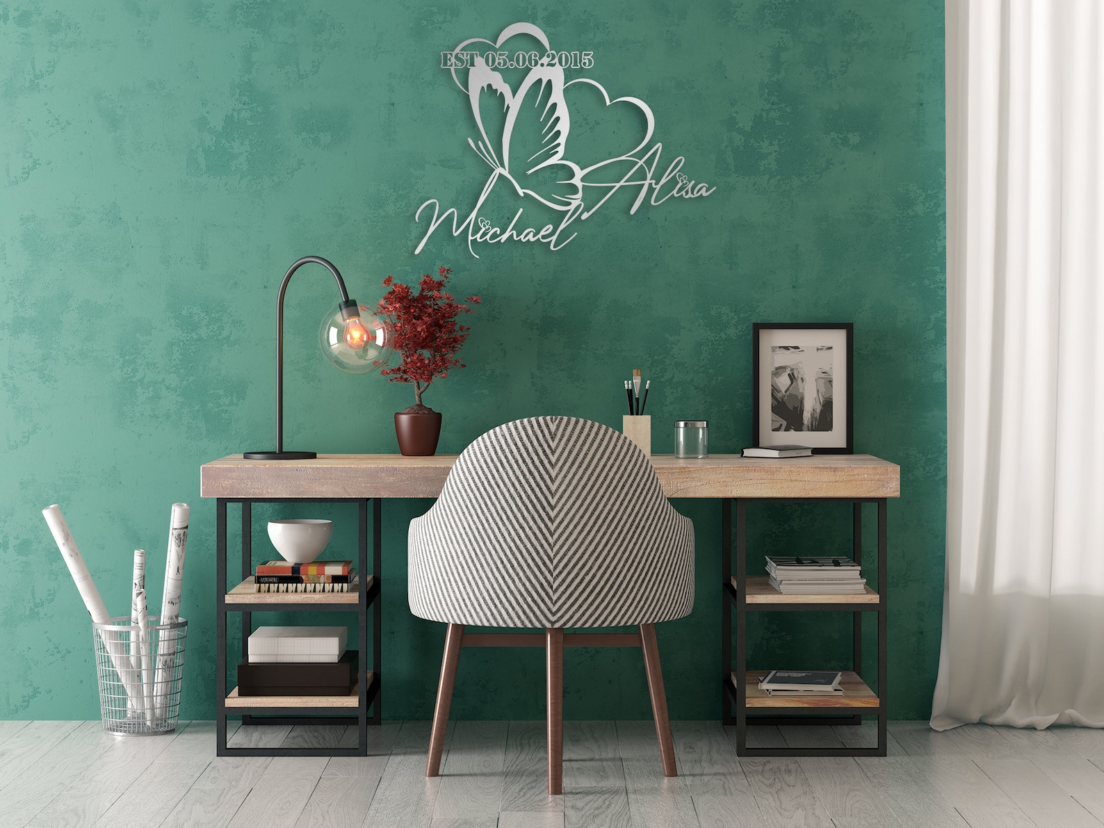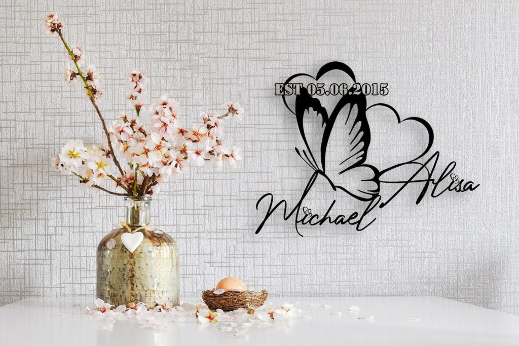Metal Customized Names and Date Sign , Heart and Butterfly, Custom Metal Wall Art, Home Decoration, Wedding, New Home ,Housewarming Gift