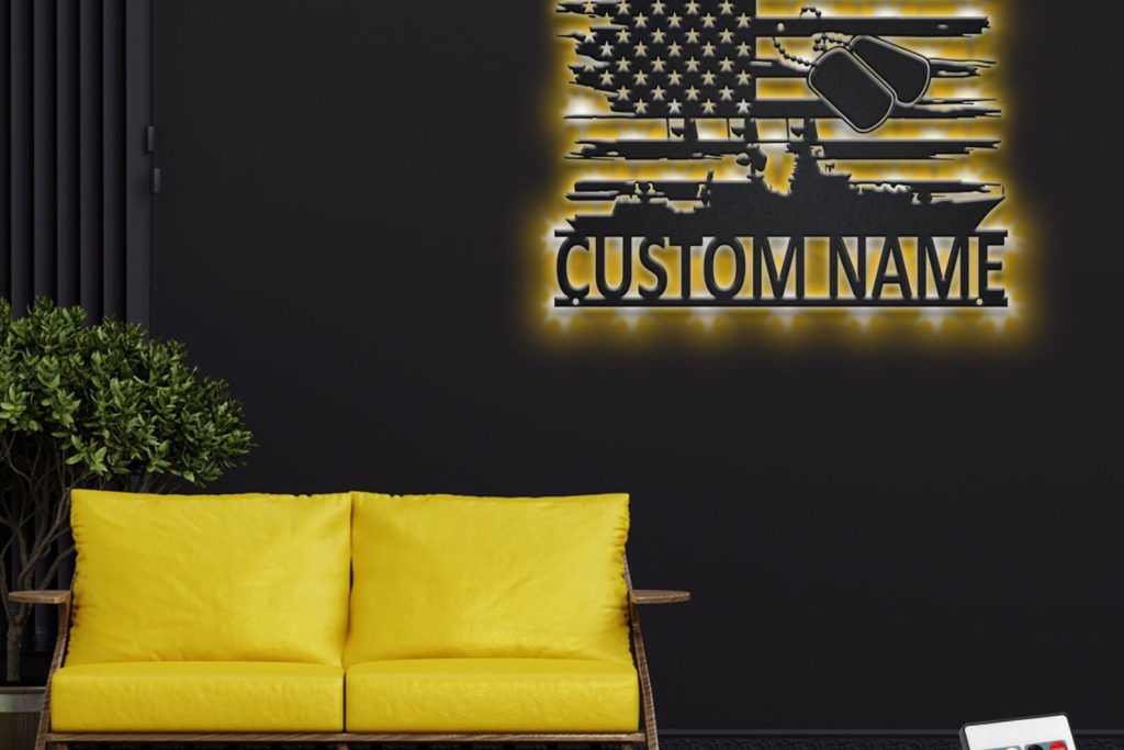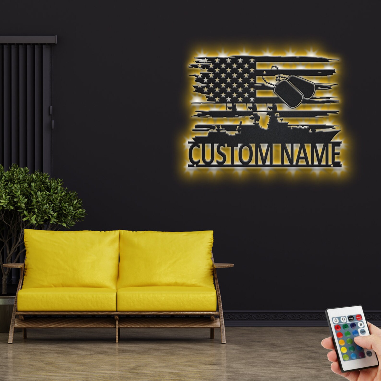 Custom Navy Veteran Metal Wall Art with LED Light, Personalized Name Sign