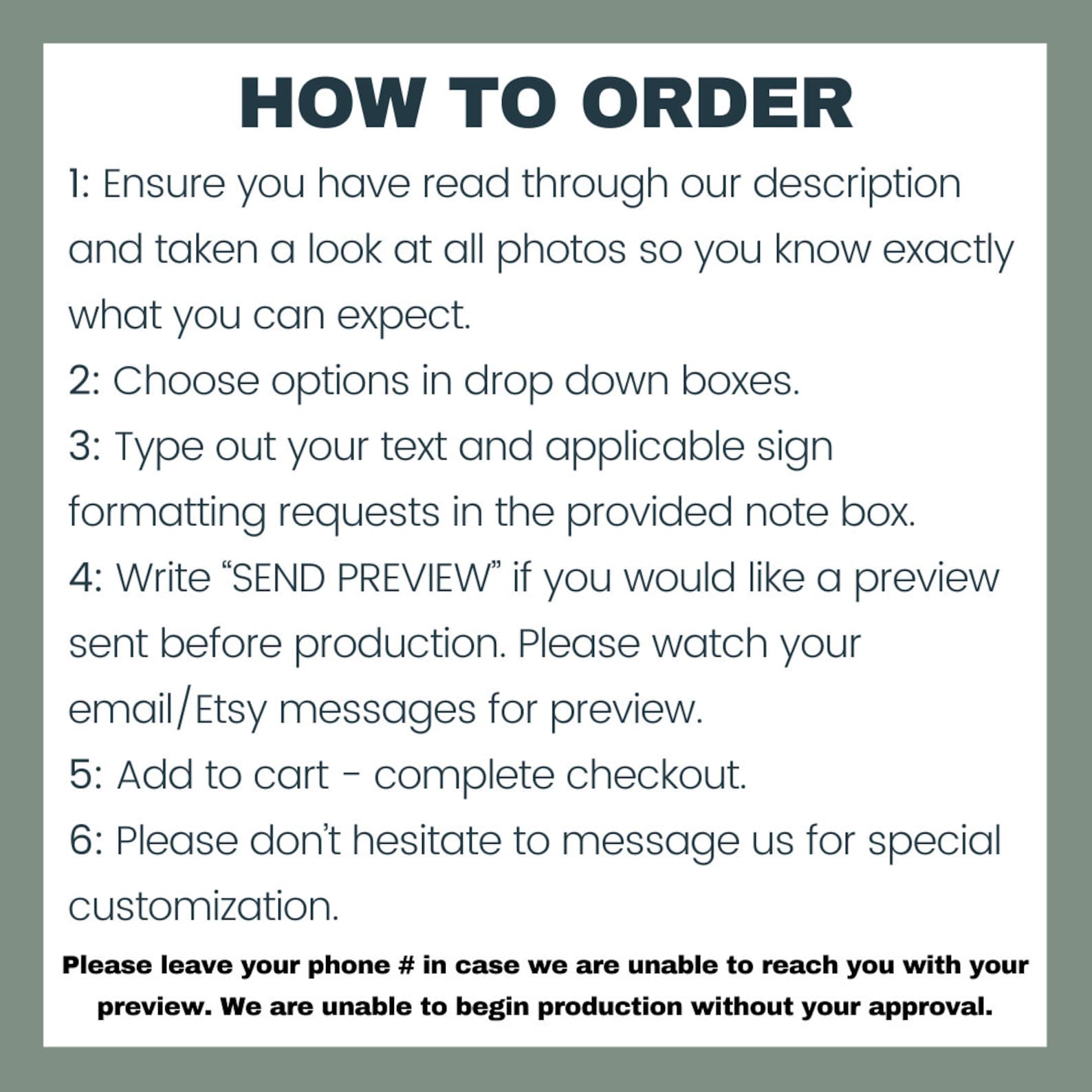 -: (frame listing & your sign must be added to the cart together)