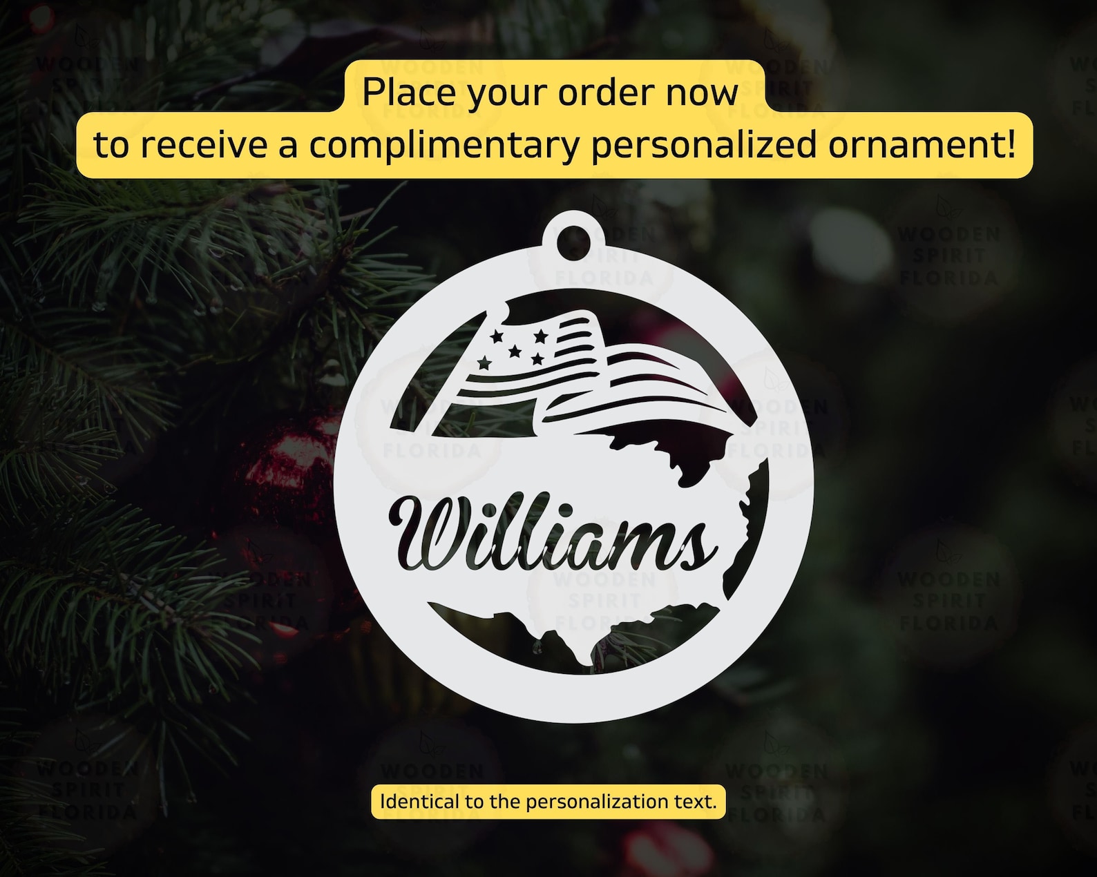 Complement your purchase with a FREE ornament, tailored to match the personalized text of your order.